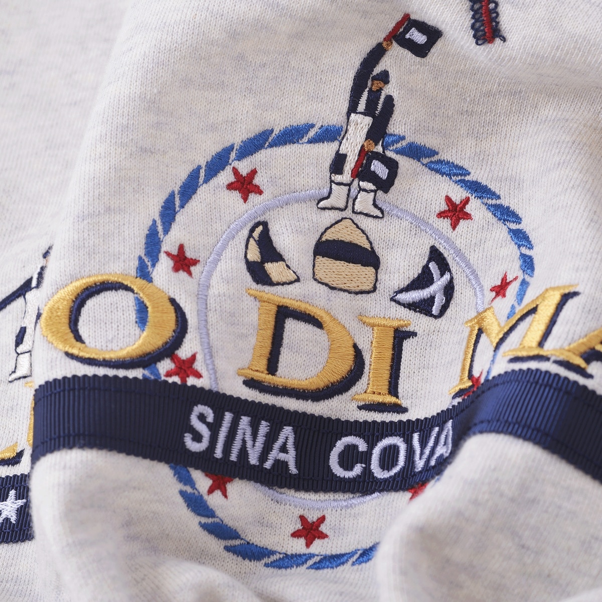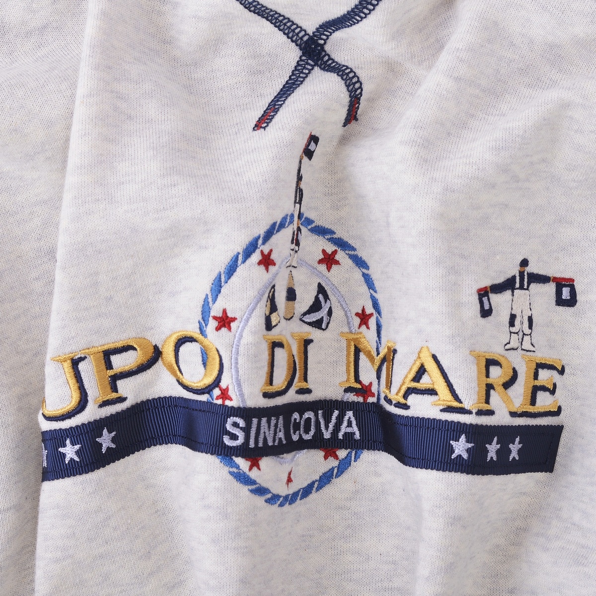 フロントに「LUPO DI MARE」の文字刺繍と国際信号機の手旗やフラッグのイメージを表現したモチーフを刺繍でデザインしたクルーネックトレーナーです。エーゲ海・トルコイズミール地方の農地で、農薬や肥料の厳格な基準を守って栽培された良質なオーガニックコットンを使用したミニ裏毛素材です。モックネックプルオーバーのデザインをベースにしつつ、切替え配色やテープ使い、ガゼットステッチワーク、そしてニット衿など細部にまでこだわりました。肌触りの良さと環境への配慮を両立し、男女問わず快適に着用できる一着です。シンプルながらも洗練されたディテールが日常のスタイリングに上品なアクセントを加え、幅広いシーンで活躍します。・男女兼用商品・環境にやさしい商品・オールシーズン【SINA COVA 2025 Autumn & Winter Style Book】掲載商品