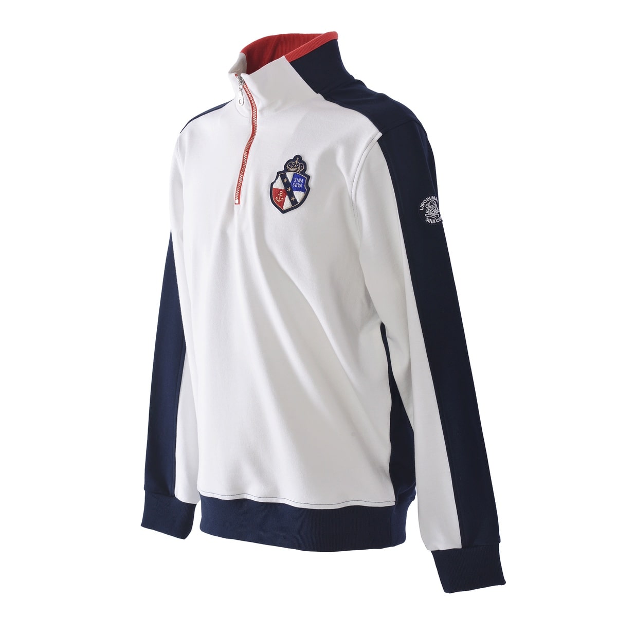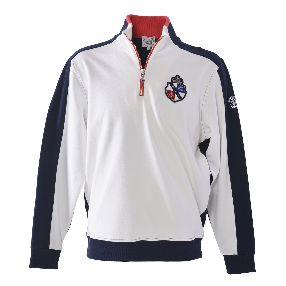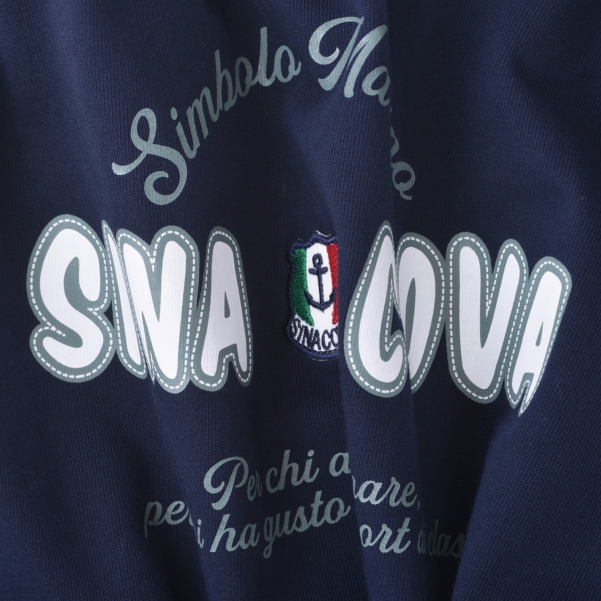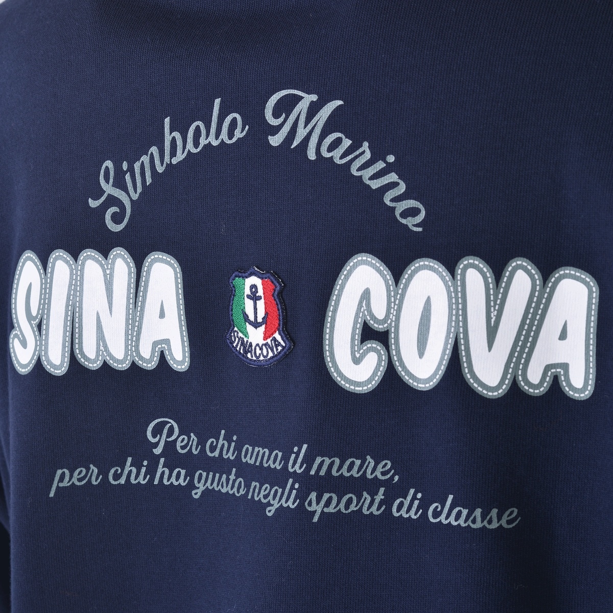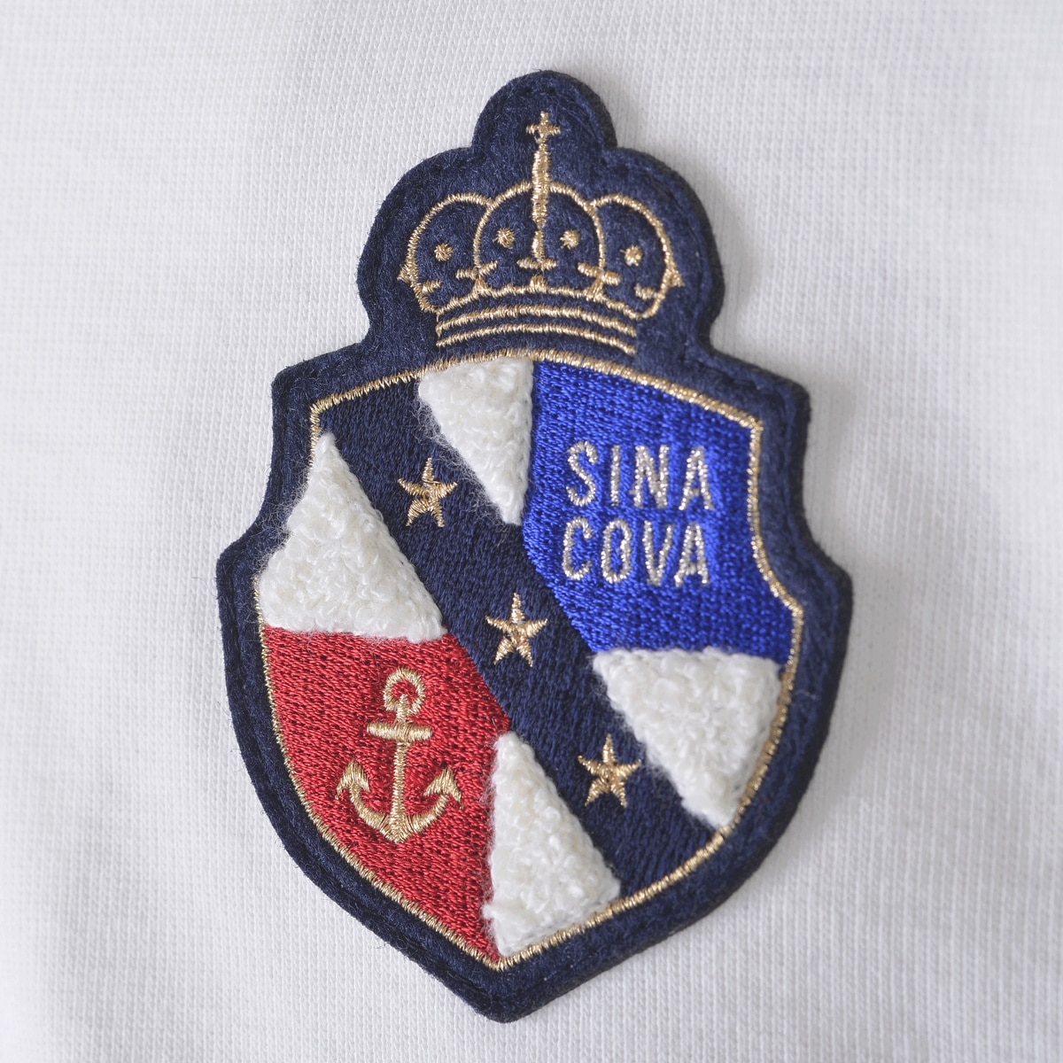 度詰裏毛の中肉タイプで毛羽立ちが少なくソフトで発色性の良い糸を使用し、編み方もひと工夫しているためきれいなオリジナル素材を使用したプルオーバーです。お馴染みのハーフZIPのプルオーバーですが、今シーズンは大胆に袖と身頃を前後ろで切替えたデザインにしています。胸元の凝った作りのワッペンと、バックの大胆な柄のプリント柄がシナコバらしさを表現しています。