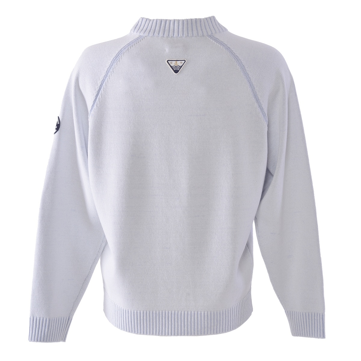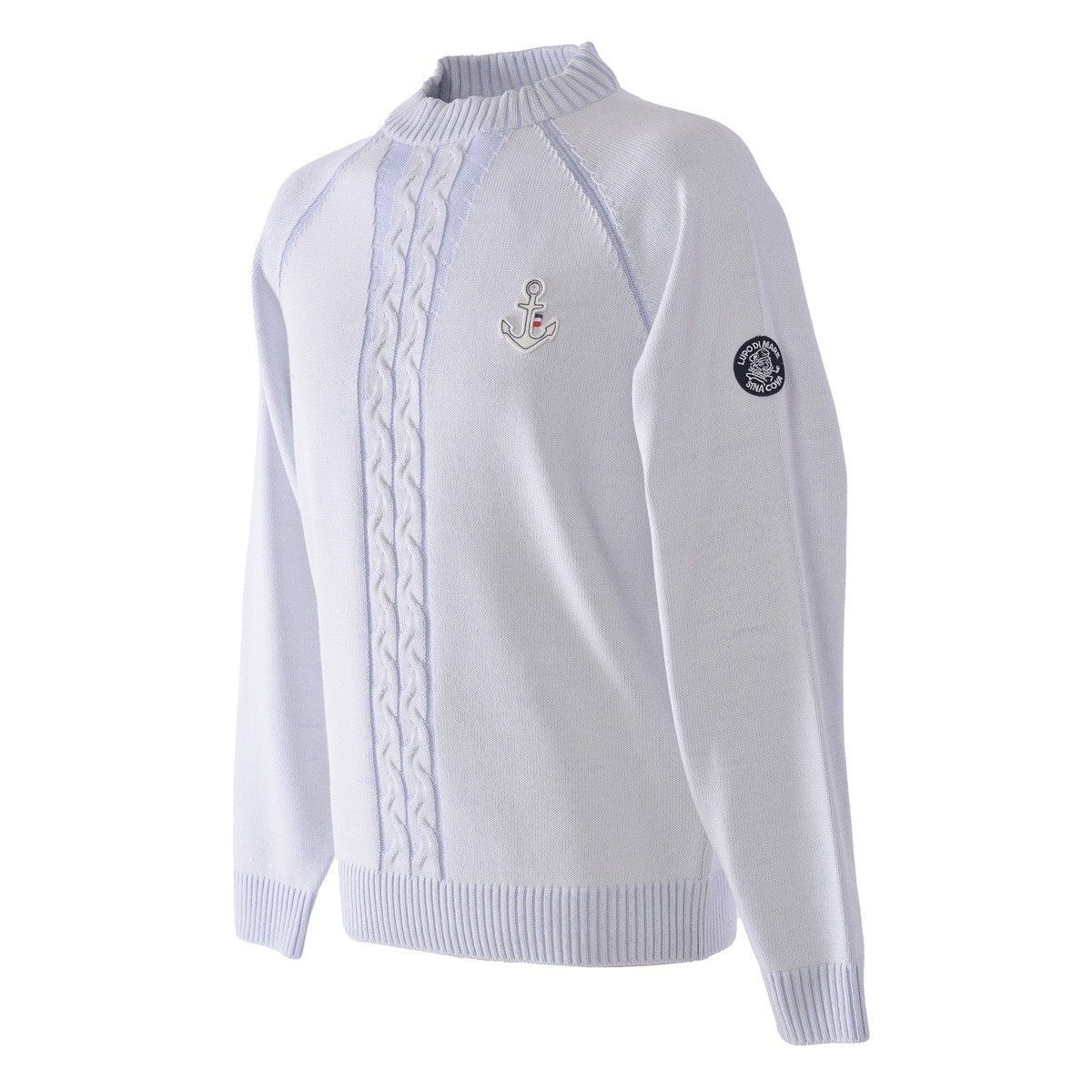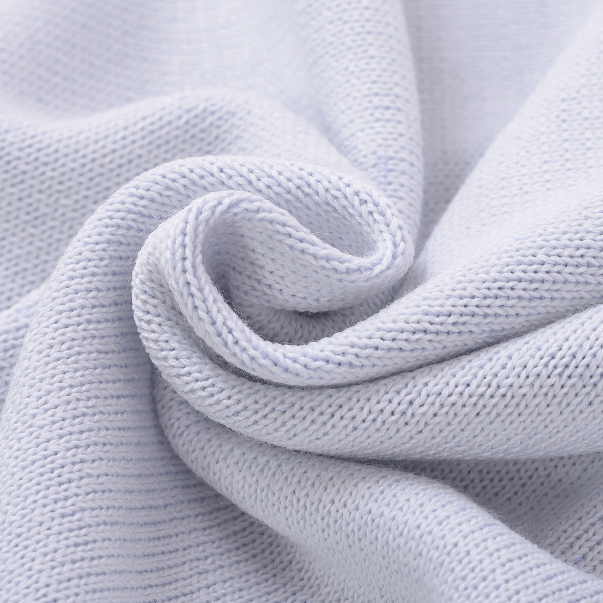軽量な素材感により、7Gの中厚編みでもウール100%のセーターに比べてさらりとした着心地を提供。