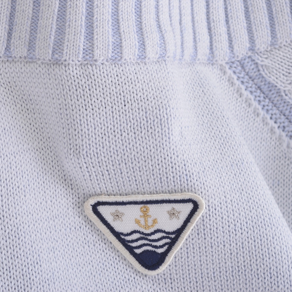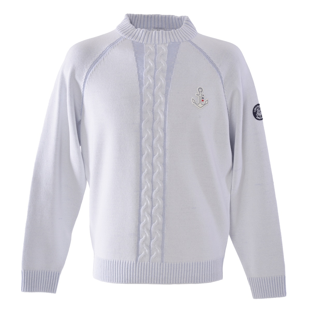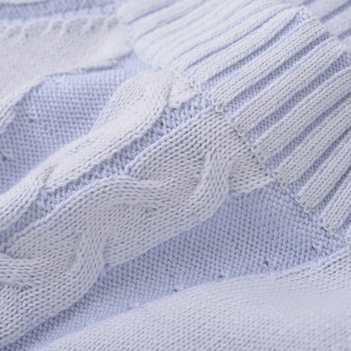 軽量な素材感により、7Gの中厚編みでもウール100%のセーターに比べてさらりとした着心地を提供。