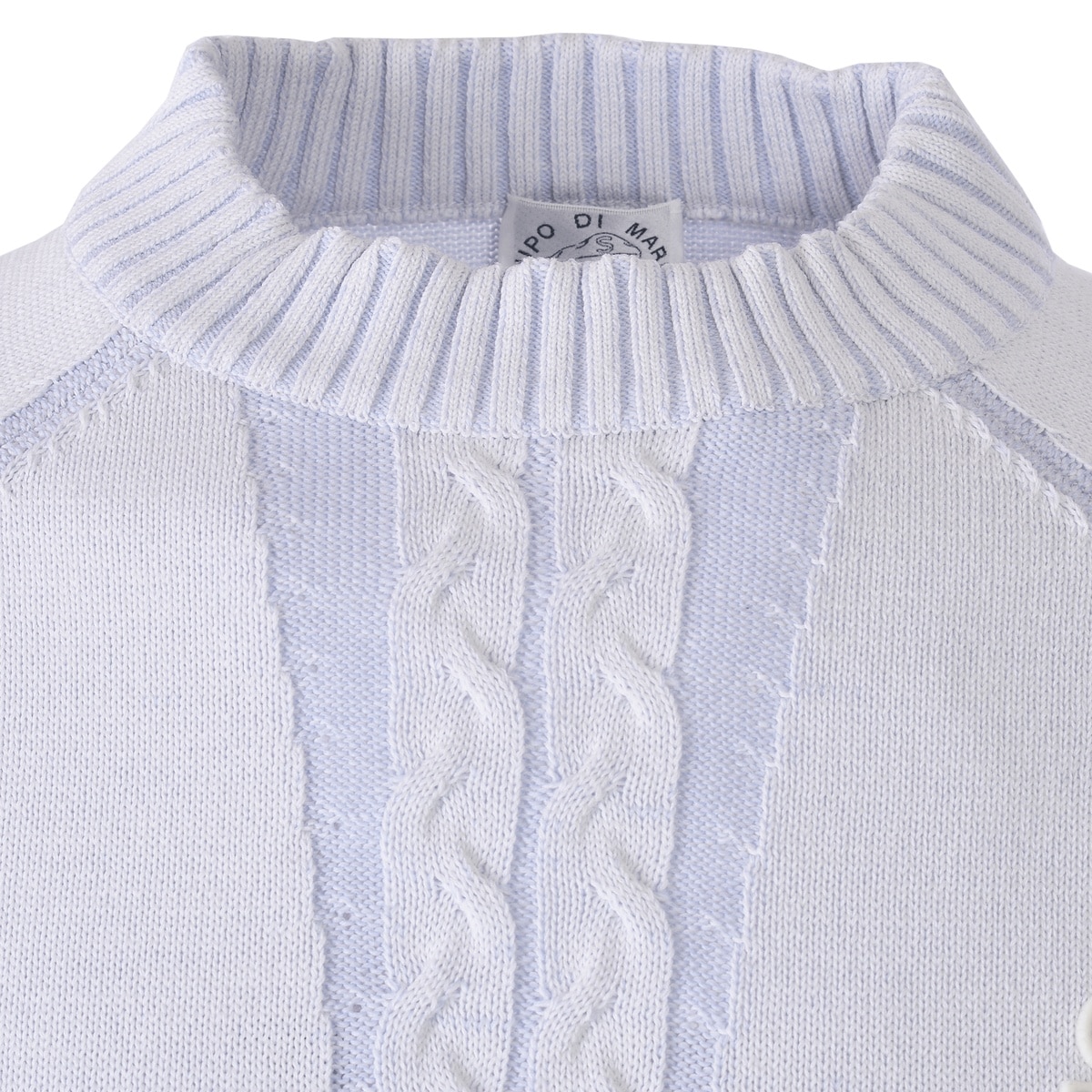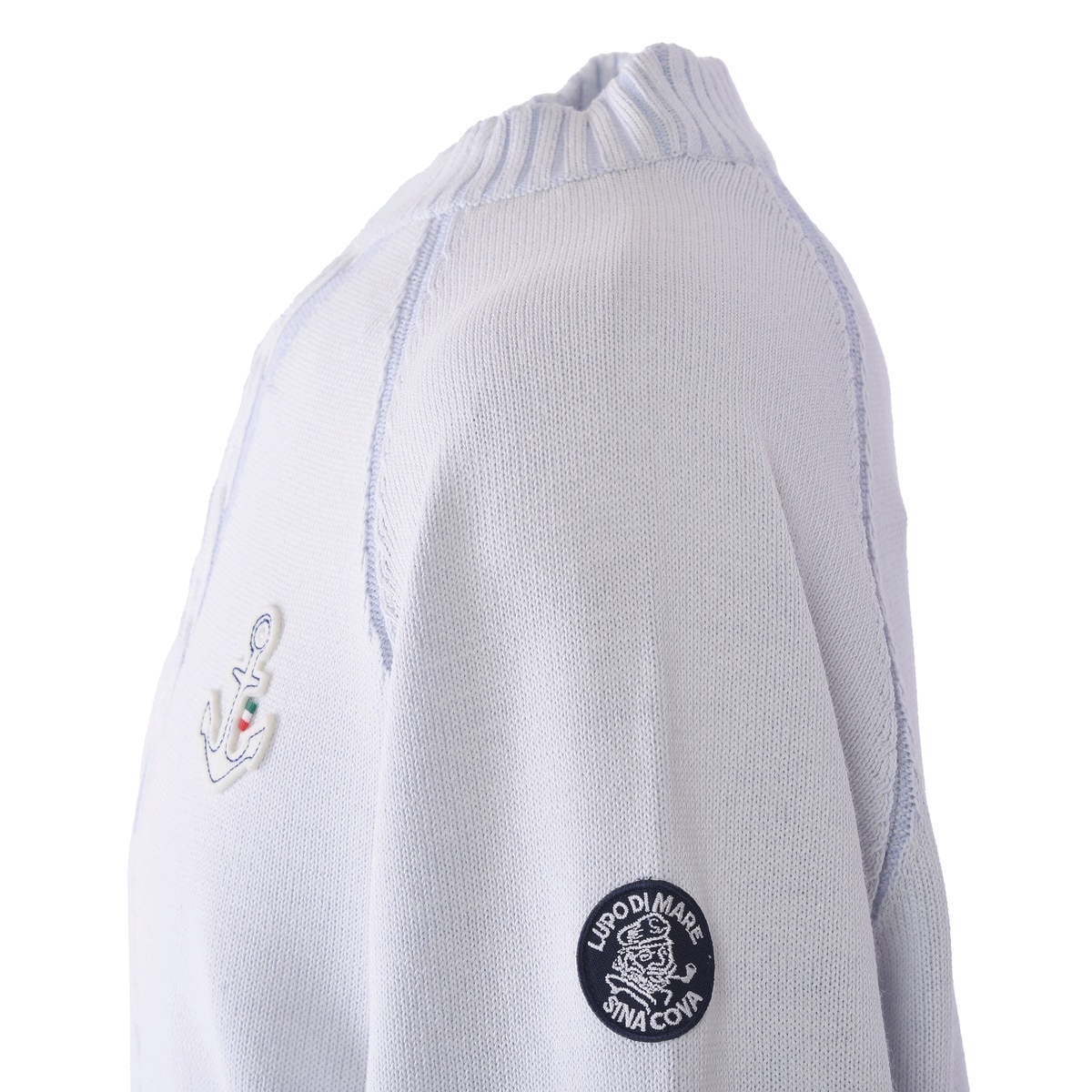 ポリエステルと防縮ウールの高撚糸を使用し、エアリーでスポンジのような独特のタッチを実現したウール混素材のモックネックセーターです。