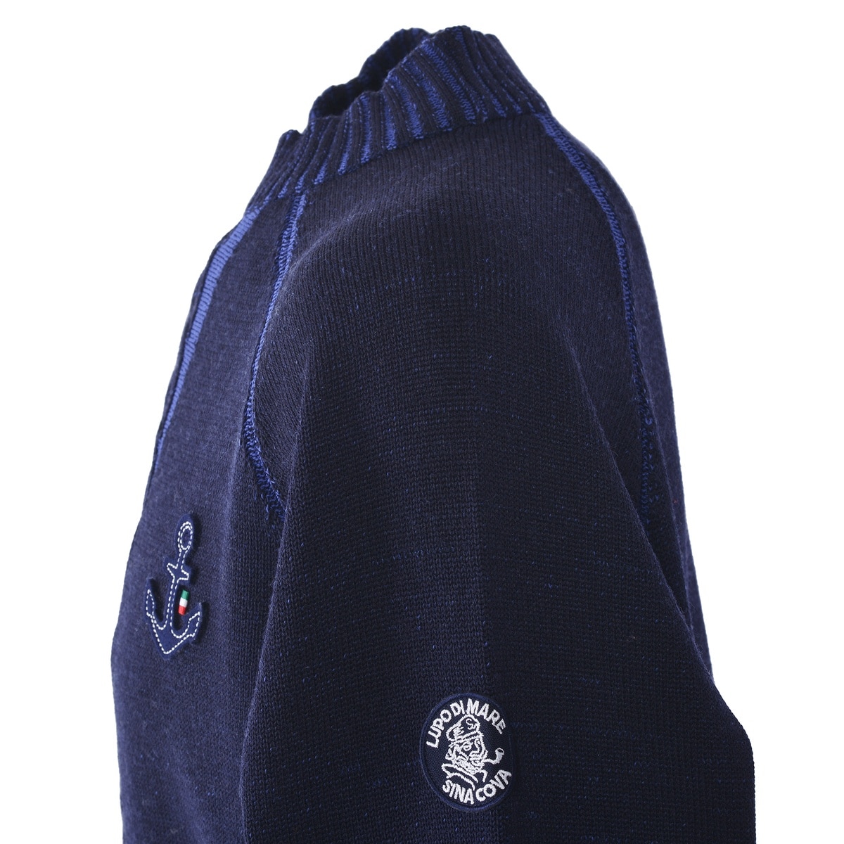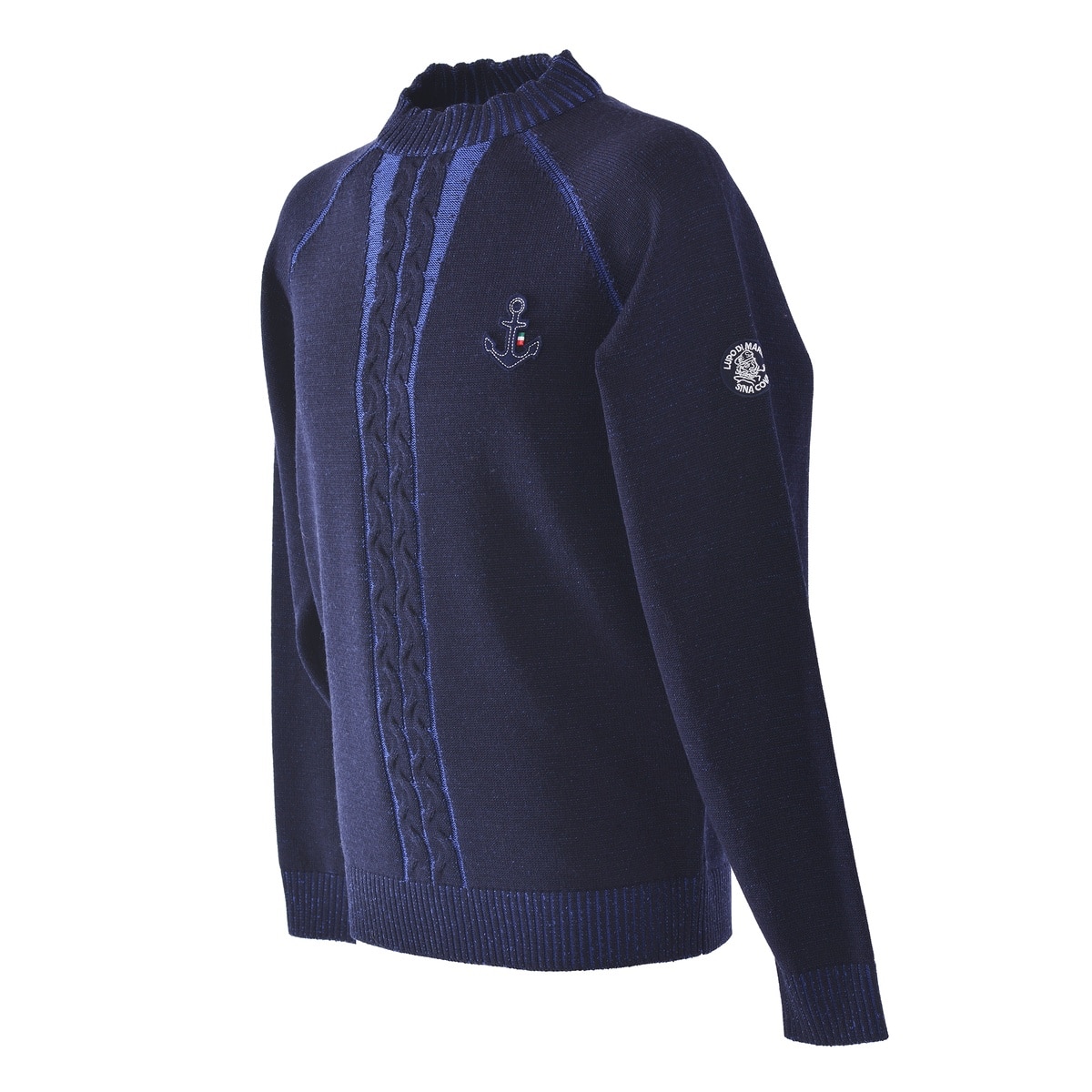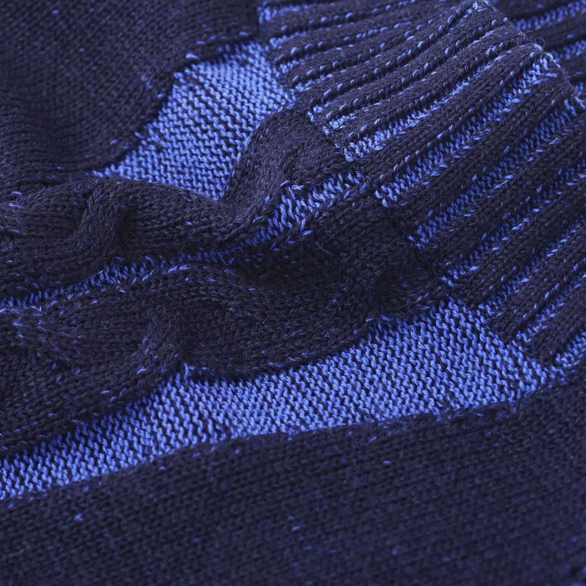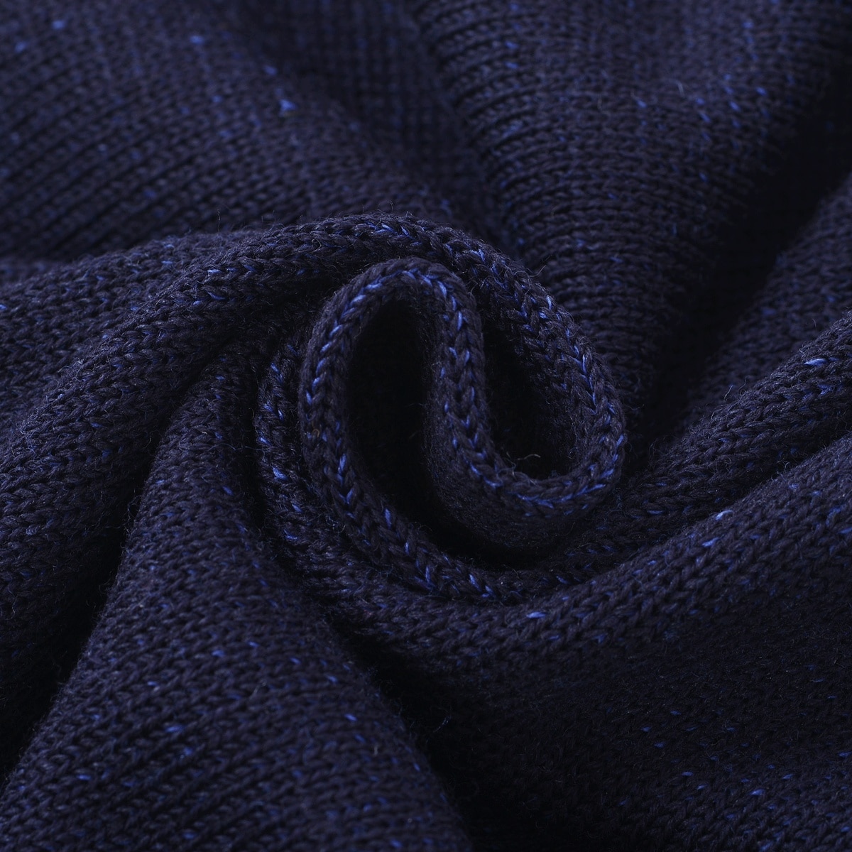 ポリエステルと防縮ウールの高撚糸を使用し、エアリーでスポンジのような独特のタッチを実現したウール混素材のモックネックセーターです。ピリングに強く、耐久性に優れているため長く愛用いただけます。軽量な素材感により、7Gの中厚編みでもウール100%のセーターに比べてさらりとした着心地を提供。春から秋までの3シーズンにわたり快適に着用できるため、幅広いシーンで活躍します。デザイン面では、二重臼のコントラストと中央の編地がアクセントとなり、シンプルながらも洗練された印象を与えます。ユニセックス仕様で性別を問わずスタイリッシュに着こなせる一着です。