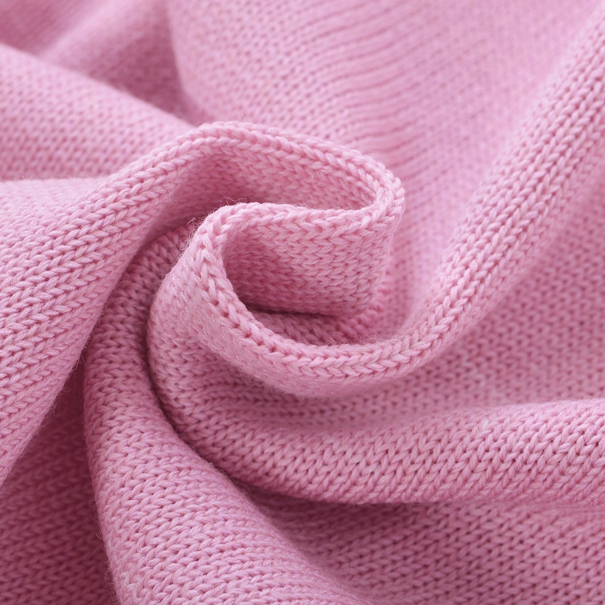 軽量な素材感により、7Gの中厚編みでもウール100%のセーターに比べてさらりとした着心地を提供。