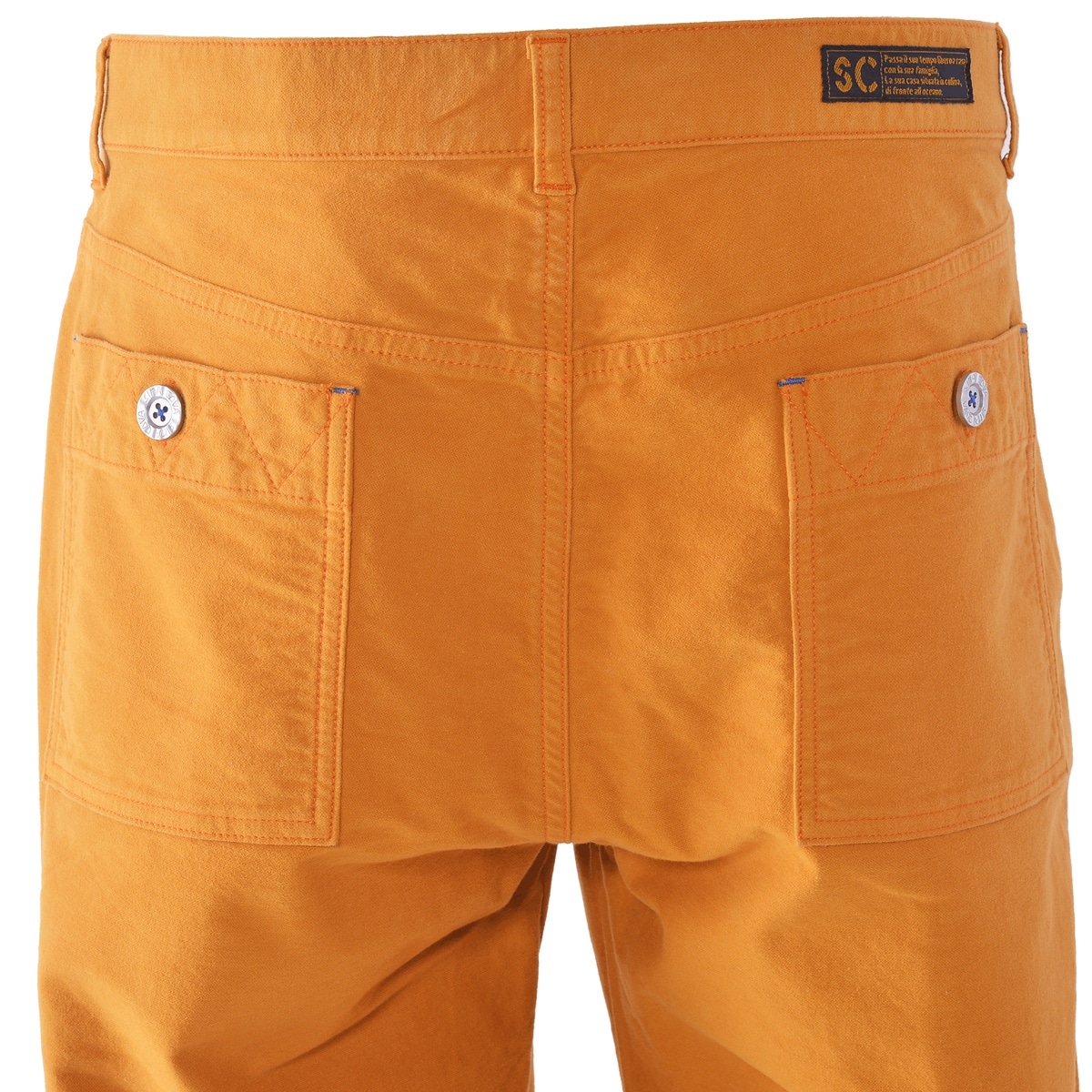 フロントポケットには海軍の階級章をモチーフにした刺繍を施し、バックにもブランドロゴの刺繍をデザインしたノータックテーパードパンツです>細番手で織り上げたモールスキンストレッチ素材に、きめ細かいスエード起毛を施し、ソフトな風合いとプレミアムなウォーム感を兼ね備え、快適な動きやすさも実現しています。マリンテイストを感じさせる鳩目の部分使いや、ヨットのセールをイメージしたポケットのステッチがデザインをアクセントに、さりげない高級感と個性を演出しています。機能性と上品なデザインを両立させた、大人の休日やビジネスカジュアルに最適な一着です。・秋冬パンツ・ストレッチパンツ【SINA COVA 2025 Autumn & Winter Style Book】掲載商品モデル着用 カラー:オレンジ男性 身長:180cm / 着用:84 size ?
