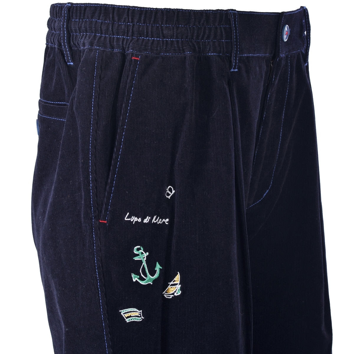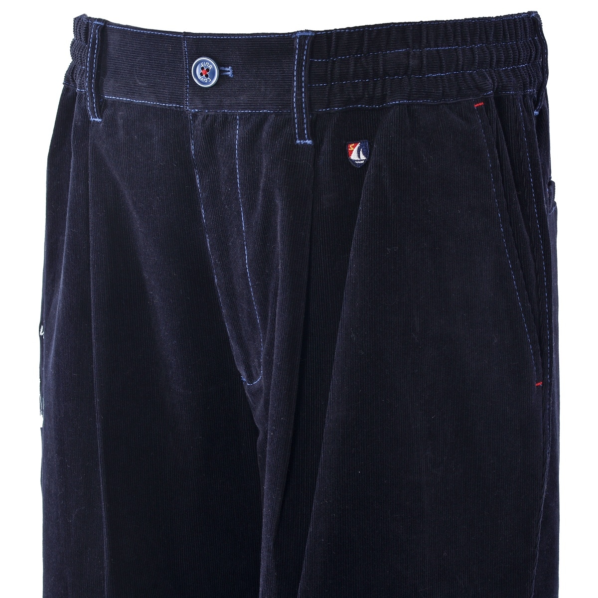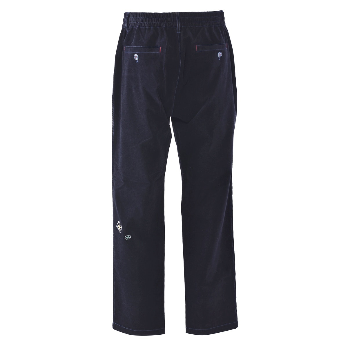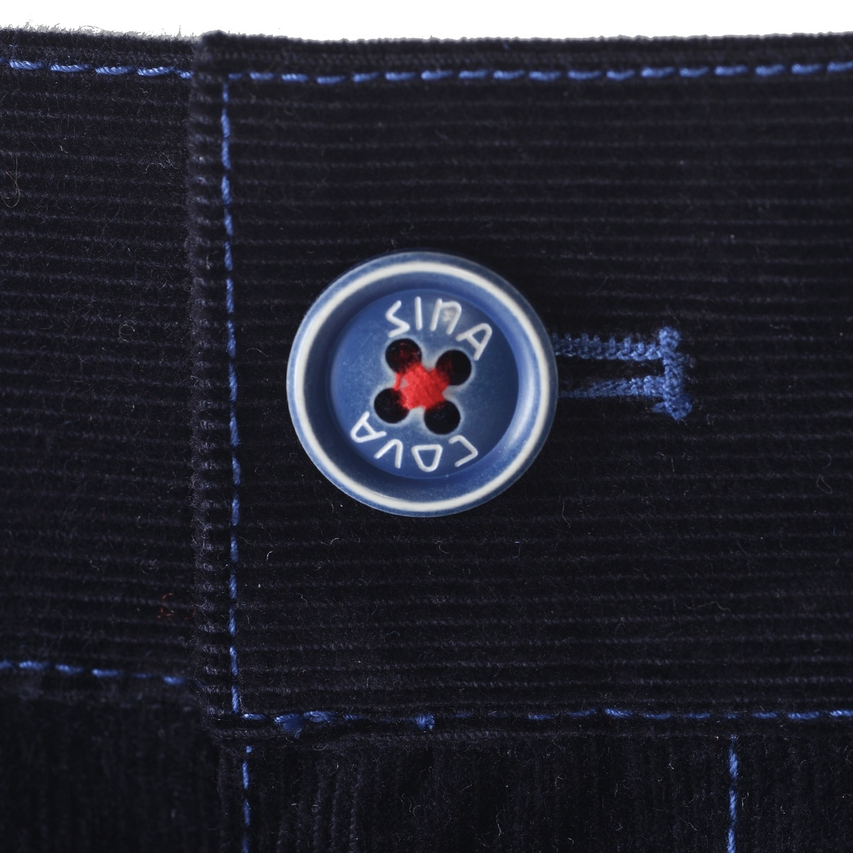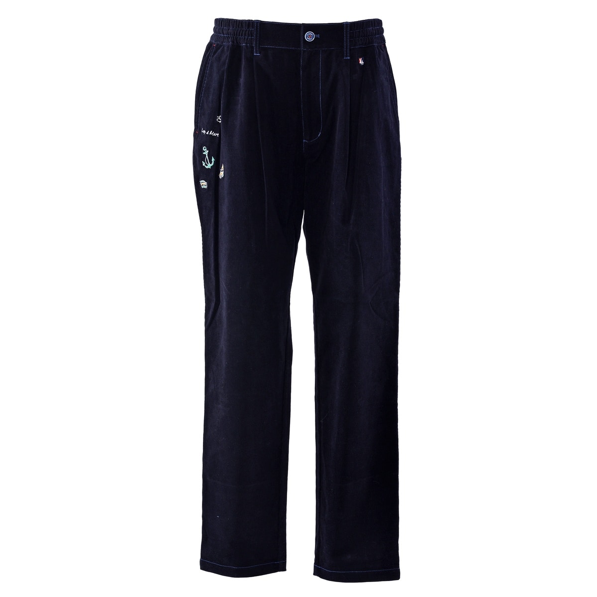 エアータンブラーで仕上げた18Wのストレッチコーデュロイ。原綿は、BCIコットン(栽培プログラムによる)を使用しており、適度な光沢とハリのある素材で、通常のタンブラー機では出せない風合いが特徴の素材を使用。シルエットはワンタックのパンツですがオリジナル釦やカラーステッチ、配色カンドメと随所にシナコバらしいこだわりを施しています。ウエストゴム仕様のため、カジュアル感のあるトップスとも組合せやすく、また右ポケット下の手刺し風のマリンモチーフがポイントとなります。【SINA COVA 2025 Autumn & Winter Style Book】掲載商品モデル着用 カラー:ブルー男性 身長:180cm / 着用:L size ?