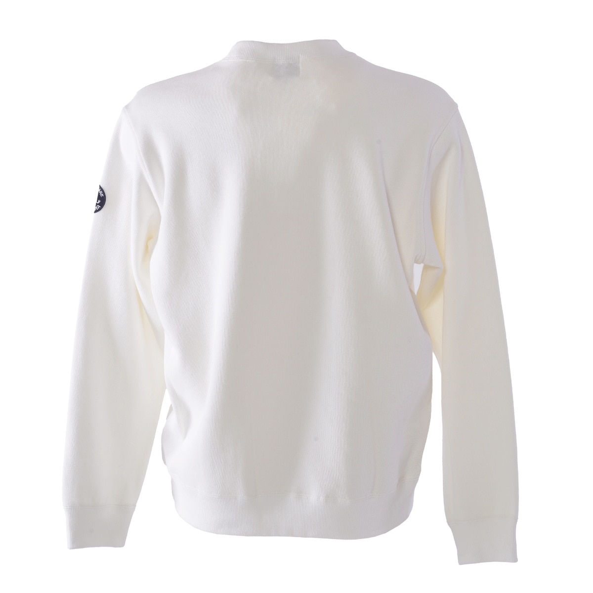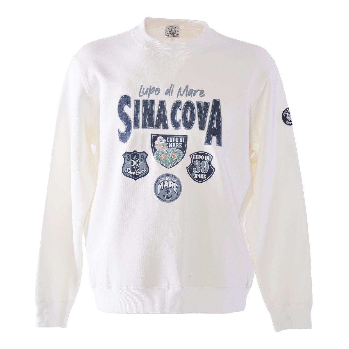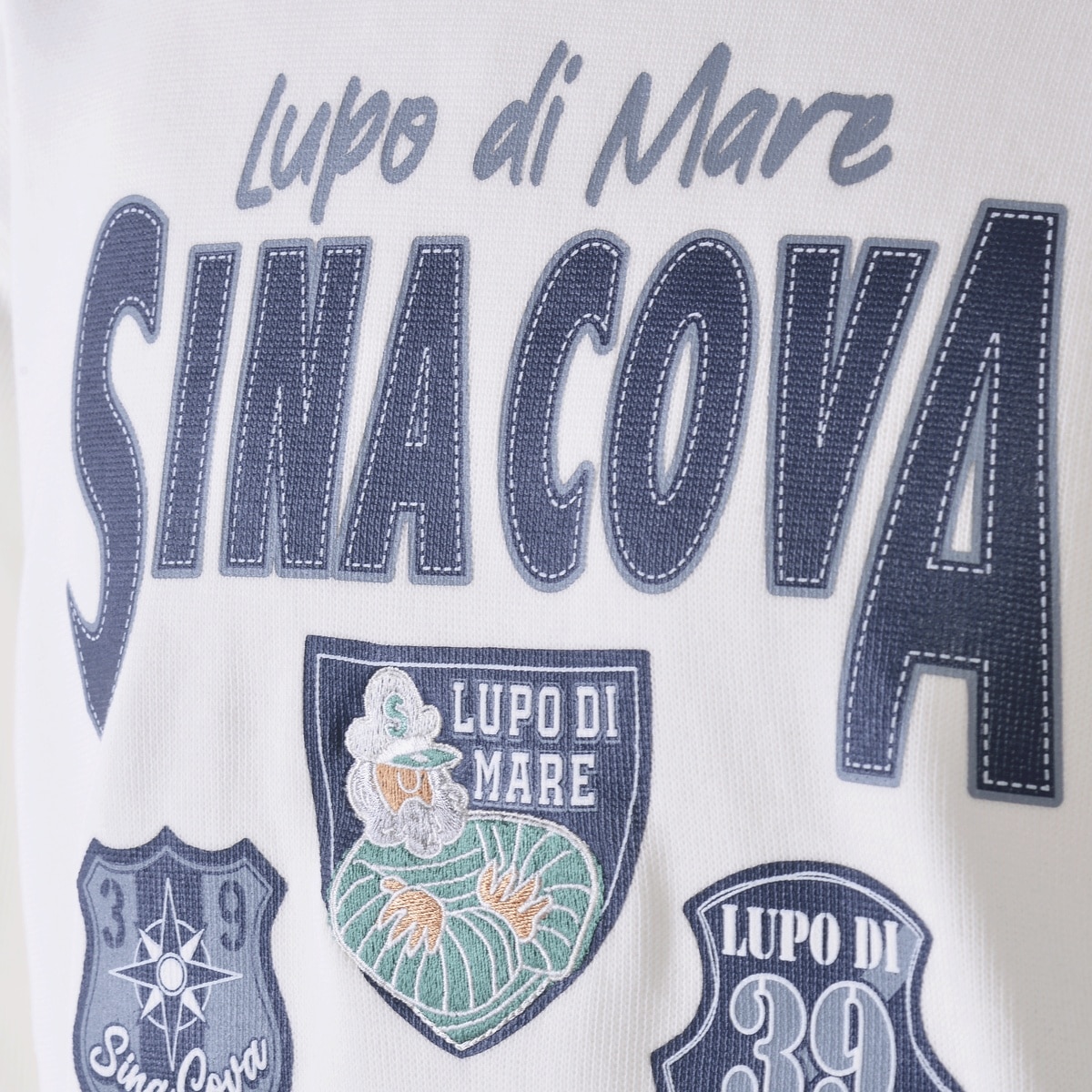 スポーティーなムードのヴィンテージライクなロゴとエンブレム調モチーフを前面にプリントし、センターのキャプテンは刺繍でデザインしたクルーネックトレーナーです。ラフすぎず程よいサイズ感で、幅広いスタイルに合わせやすいデザインです。希少な編機を用いて20番手コーマ糸を引き揃えたWフェイス素材は、ソフトで立体感のある風合いが特徴です。綿特有の優れた吸湿性を持ち、長時間かけて丁寧に編み上げることで耐久性も確保。オールシーズン対応の適度な肉感により、季節を問わず快適に着用できる汎用性の高い一着として、日常からビジネスカジュアルまで幅広く活躍します。・高吸湿性・高耐久性【SINA COVA 2025 Autumn & Winter Style Book】掲載商品モデル着用 カラー:ネイビー男性 身長:180cm / 着用:L size ?