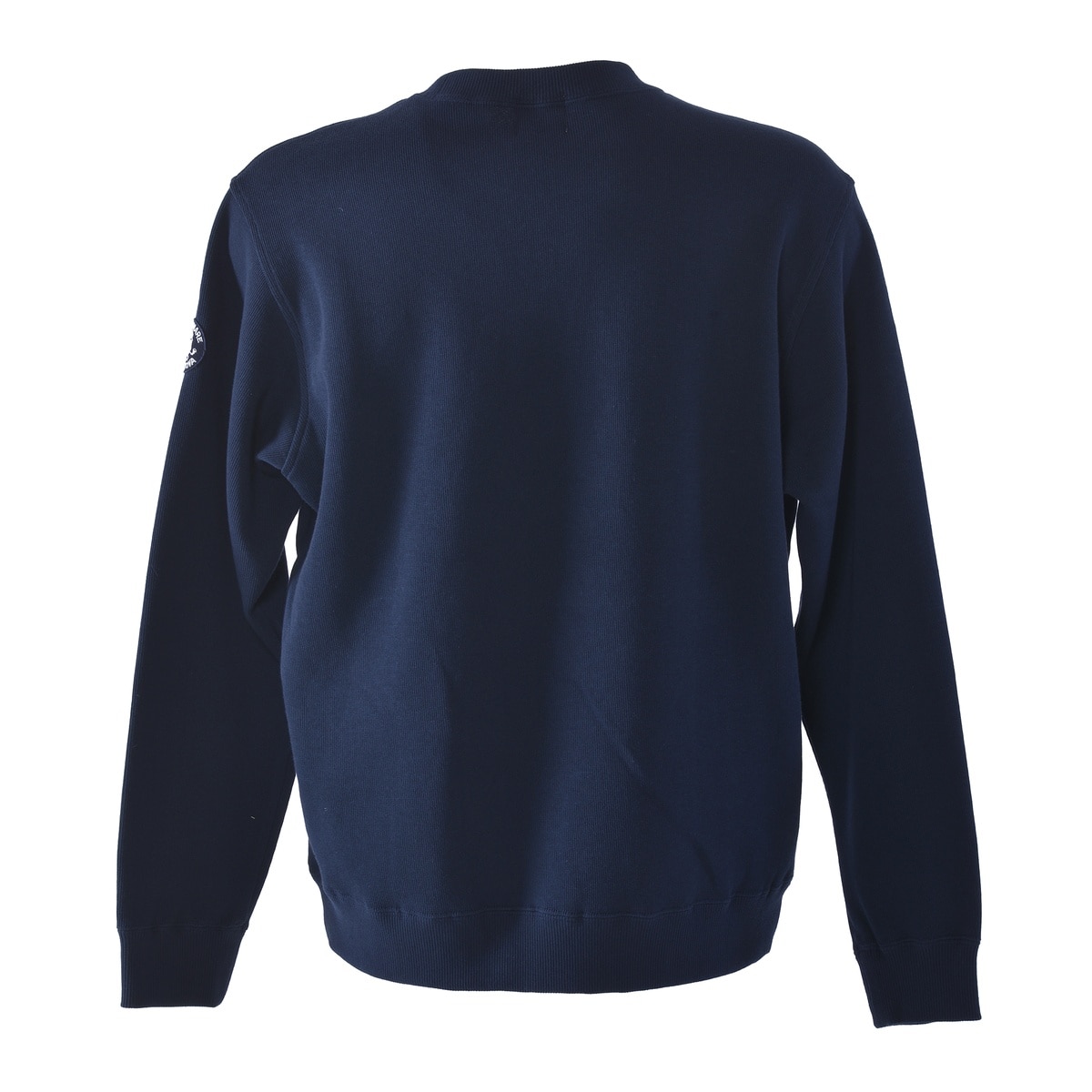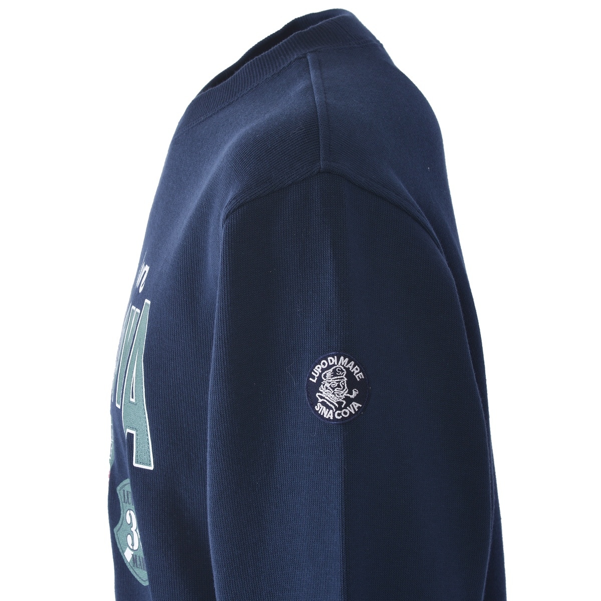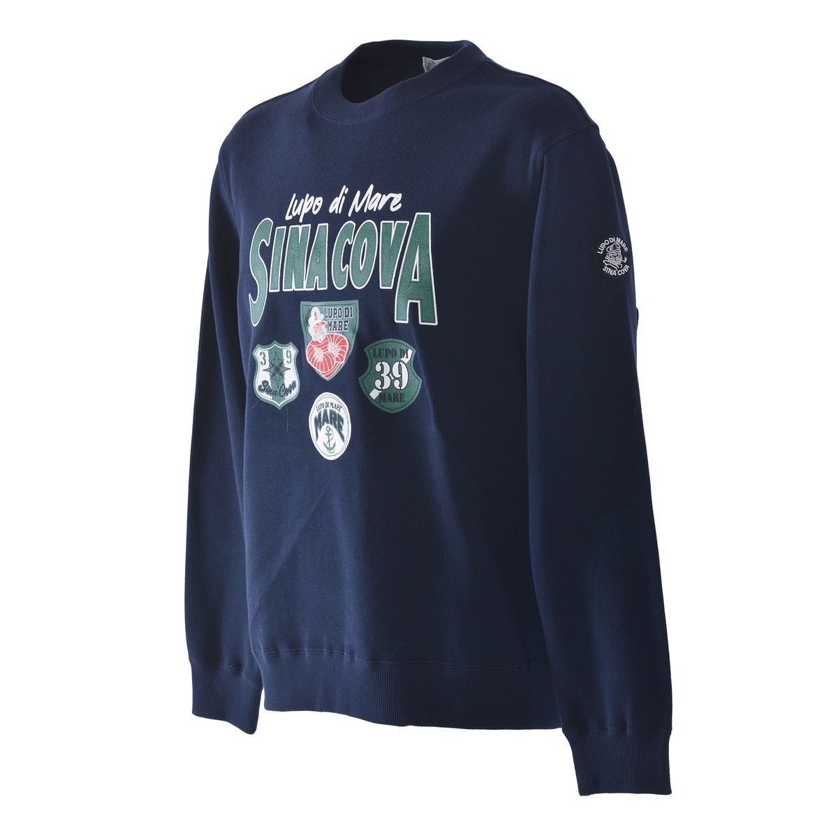 スポーティーなムードのヴィンテージライクなロゴとエンブレム調モチーフを前面にプリントし、センターのキャプテンは刺繍でデザインしたクルーネックトレーナーです。ラフすぎず程よいサイズ感で、幅広いスタイルに合わせやすいデザインです。希少な編機を用いて20番手コーマ糸を引き揃えたWフェイス素材は、ソフトで立体感のある風合いが特徴です。綿特有の優れた吸湿性を持ち、長時間かけて丁寧に編み上げることで耐久性も確保。オールシーズン対応の適度な肉感により、季節を問わず快適に着用できる汎用性の高い一着として、日常からビジネスカジュアルまで幅広く活躍します。・高吸湿性・高耐久性【SINA COVA 2025 Autumn & Winter Style Book】掲載商品モデル着用 カラー:ネイビー男性 身長:180cm / 着用:L size ?