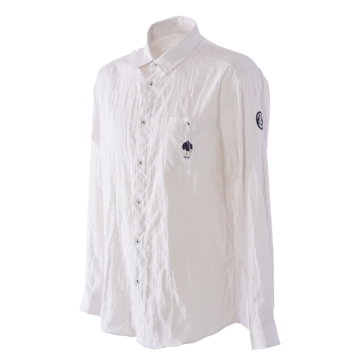 左胸ポケットと背ヨークに小さなキャプテンの刺繍を前後柄でデザインした長袖レギュラーシャツです。定番のレギュラーカラーと体のラインを拾わないボックスシルエットが特徴です。ベースには40番手単糸を使用し、部分的に綿でカバーしたポリウレタン糸の収縮により、凹凸感のある上品なヘリンボーン生地を実現。BCI認証の綿を用い、適度な起毛で柔らかな肌触りと優れた通気性を兼ね備えています。肌に触れる面積を抑える設計で、残暑の時期も快適に過ごせます。無地とギンガムチェックの2種類があり、柄違いでのコーディネートも楽しめカジュアルな日常使いはもちろん、バカンスや初秋から冬のレイヤードスタイルにも最適で、長期間にわたり活躍する一着です。・羽織シャツ・薄めな生地・春秋にお勧め・レギュラーカラー