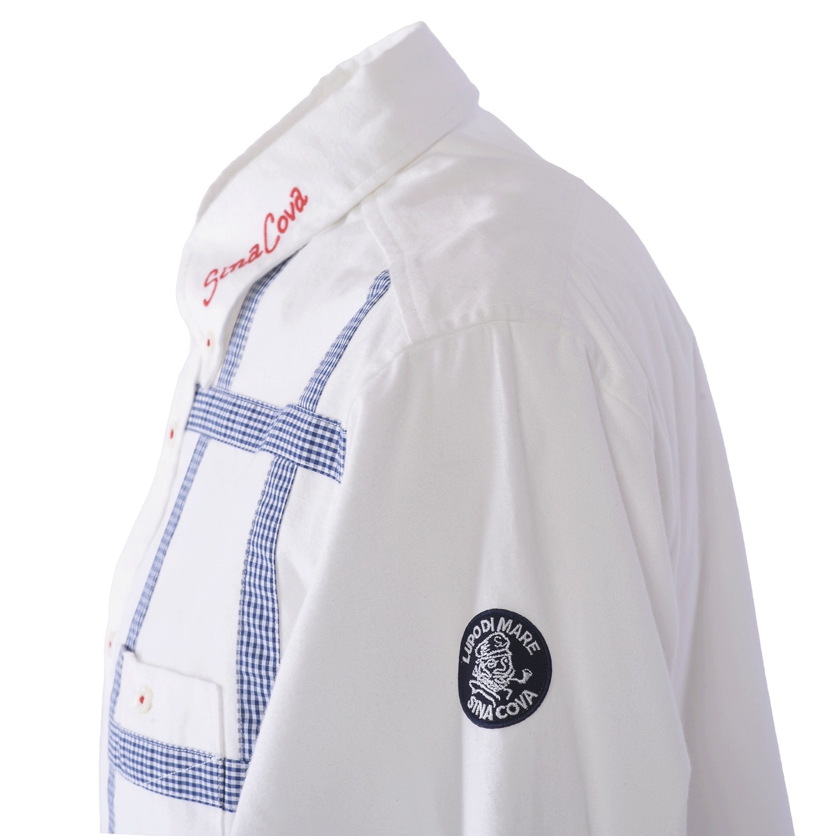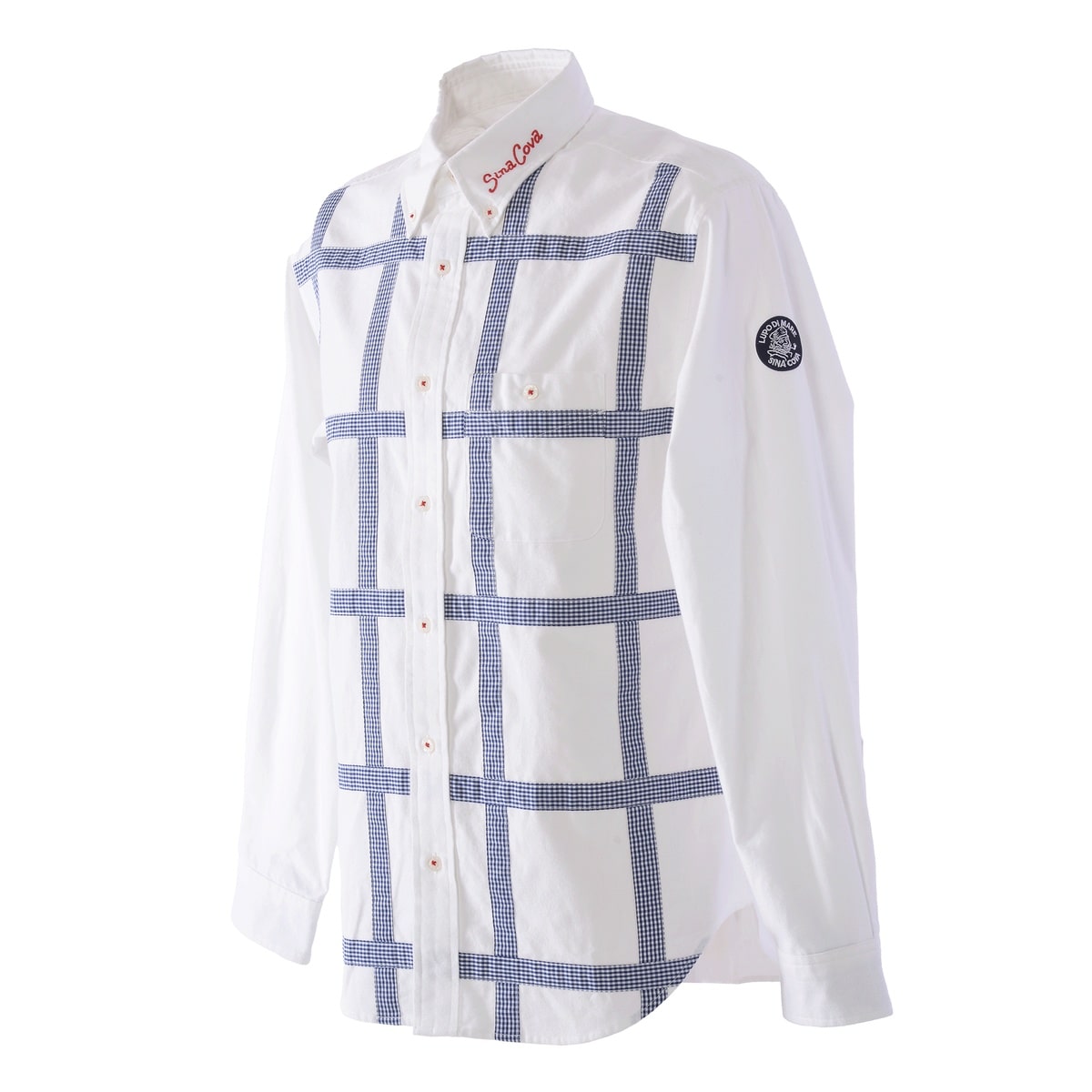 カジュアルの王道ボタンダウンシャツ。クラシックながら遊び心のあるディティールを採用。身頃とアームにゆとりを持たせ、カジュアルに着こなせるシルエットに。一般的なネル生地より非常にソフトで上品な風合いを持ち、何度も起毛を行い、キメの整った滑らかな質感が特徴。綿特有の汗や湿気を吸収し肌をドライに保つ素材特性機能と起毛によるウォーミーな肌触りを両立。身頃には細かなギンガムチェックのテープ生地を格子状に配置し、存在感を引き立たせています。二次加工はシンプルに、襟元にロゴ刺繍を施した一着。