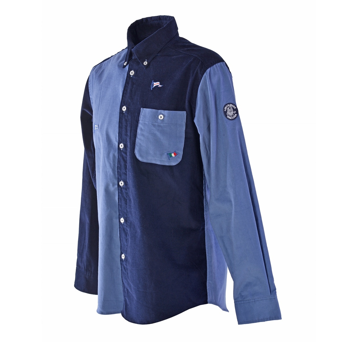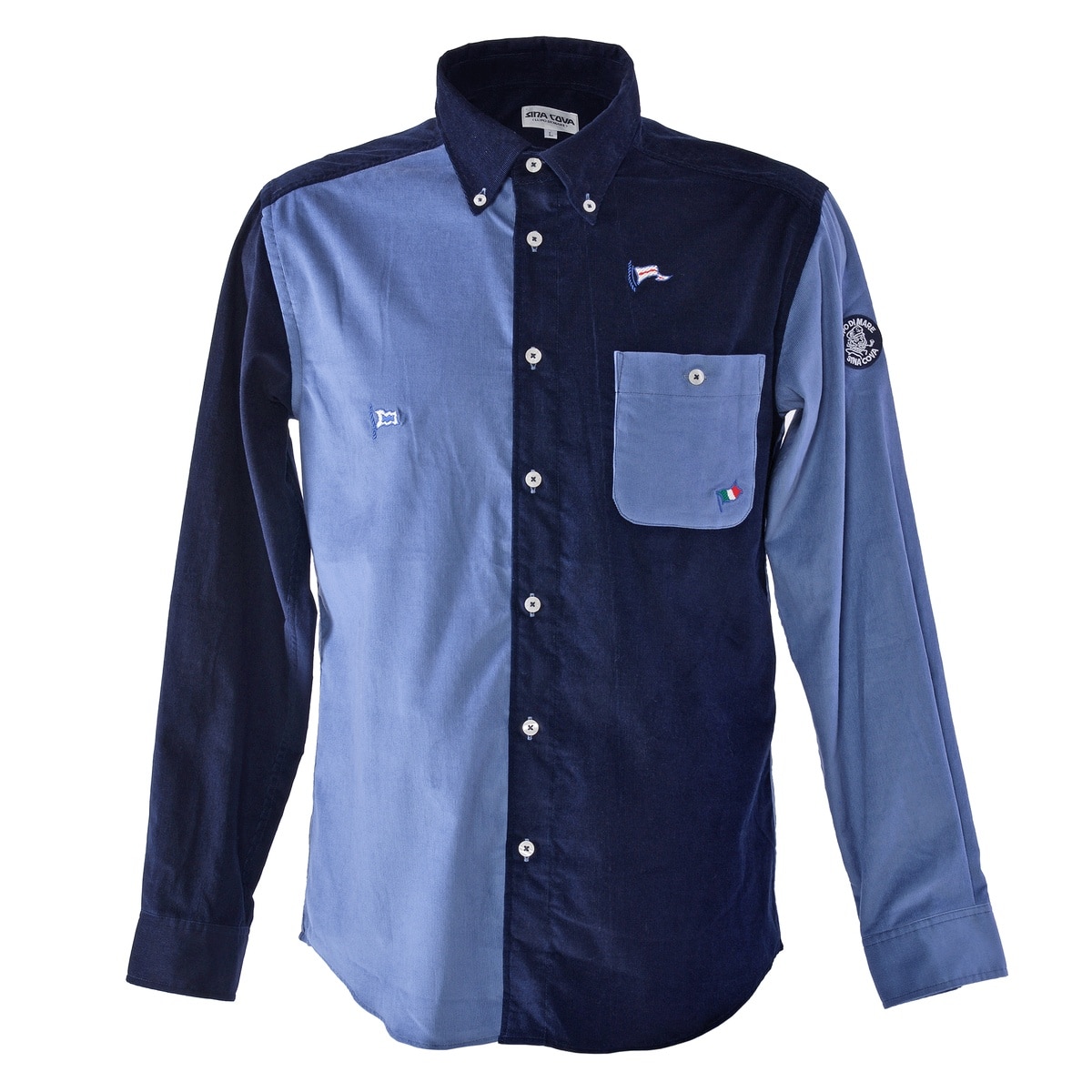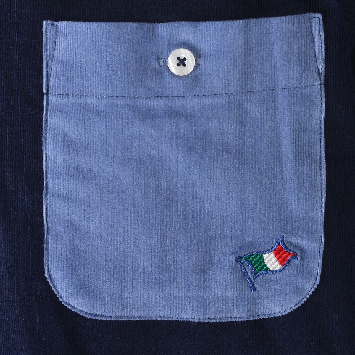 優れた保温性と柔らかな手触りが寒い時期にぴったりなコーデュロイ生地のボタンダウンシャツ。ボックスシルエットで、体のラインを強調しすぎボックスシルエット。畝を作るカットの丁寧さと、きれいな仕上がりが魅力な膨らみのある21Wの細畝コーデュロイ素材は、ウォーミーで上品な光沢感と畝の表面感が特徴。同組織の別色をそれぞれのパーツに配置したブランド得意の切替クレイジーパターン。身頃と袖に旗やヨットなどのマリンモチーフの刺繍を施しました。休日カジュアルやこなれたオフィスカジュアルとして、幅広く活躍するアイテムです。