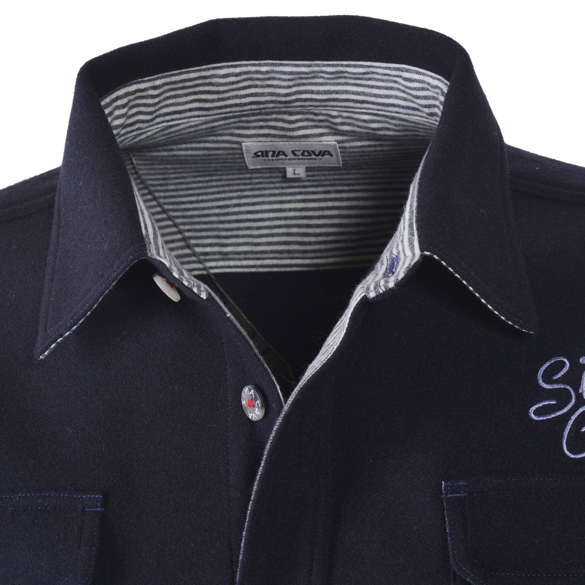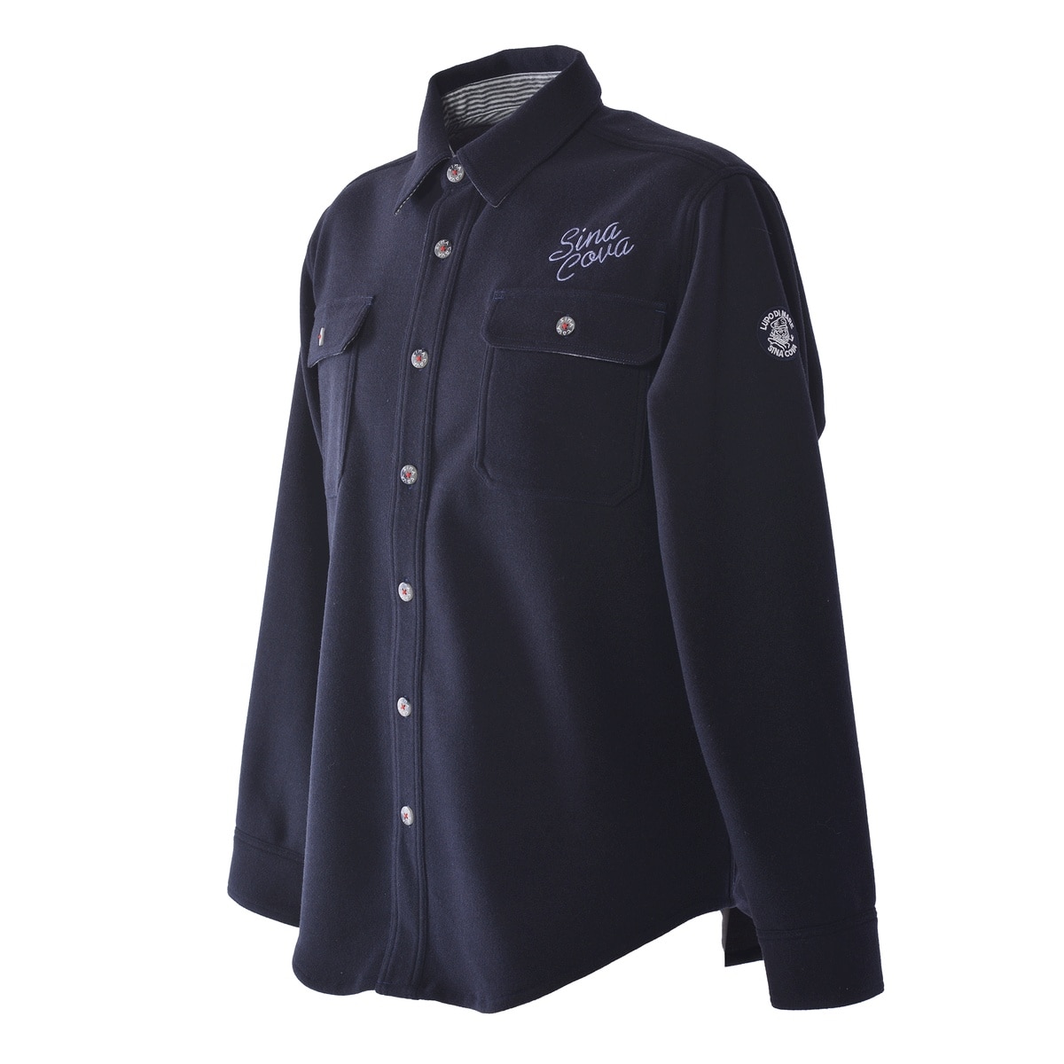 フロントにさり気なく「SINA COVA」文字ロゴ刺繍、バックの衿にイカリの刺繍をデザインしたシャツジャケットです。秋冬の気温変化に対応するCPOシャツジャケットは、ウールのような質感を持ちながらも、扱いやすい合成繊維を使用しています。リアルなウールの風合いを再現したストレッチジャージ素材は、軽量で動きやすく、肌にチクチクせず快適な着心地を実現。ウォッシャブルでメンテナンスも簡単です。適度な厚みを持ちながら、衿や前立て、ヨーク部分にはボーダーの別素材を用い、重たくならず洗練された印象に。気温に応じてTシャツやモックネックと合わせることで、ジャケットよりもカジュアルなスタイルが楽しめる汎用性の高い一着です。・やや厚め生地・羽織シャツ・ポケット2カ所・秋冬アイテム