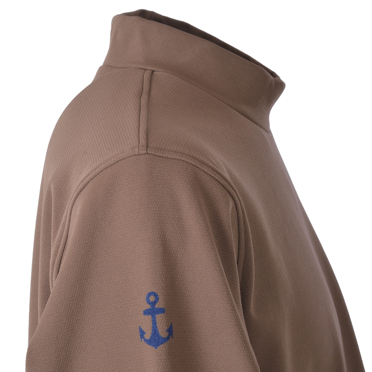 ゴルフウェアとしての機能性とデザイン性を兼ね備えた一着です。秋冬の定番アイテムとして、キャプテンのプリントを後ろ身頃中央に配し、4色展開で幅広いスタイルに対応。速乾性に優れ、汗を素早く吸収・乾燥させるため、快適な着心地を長時間キープします。軽量で動きやすく、UVカット機能(紫外線遮蔽率90%以上)も備えているため、日差しの強い日も安心。前身頃はシンプルな無地感覚で、どんなボトムスとも合わせやすく、初秋や春先は一枚で、寒い季節にはインナーとしても活躍します。高いイージーケア性も魅力で、日常使いからスポーツシーンまで幅広く活用できる優れたアイテムです。・バックプリント・ハイネック・高機能素材