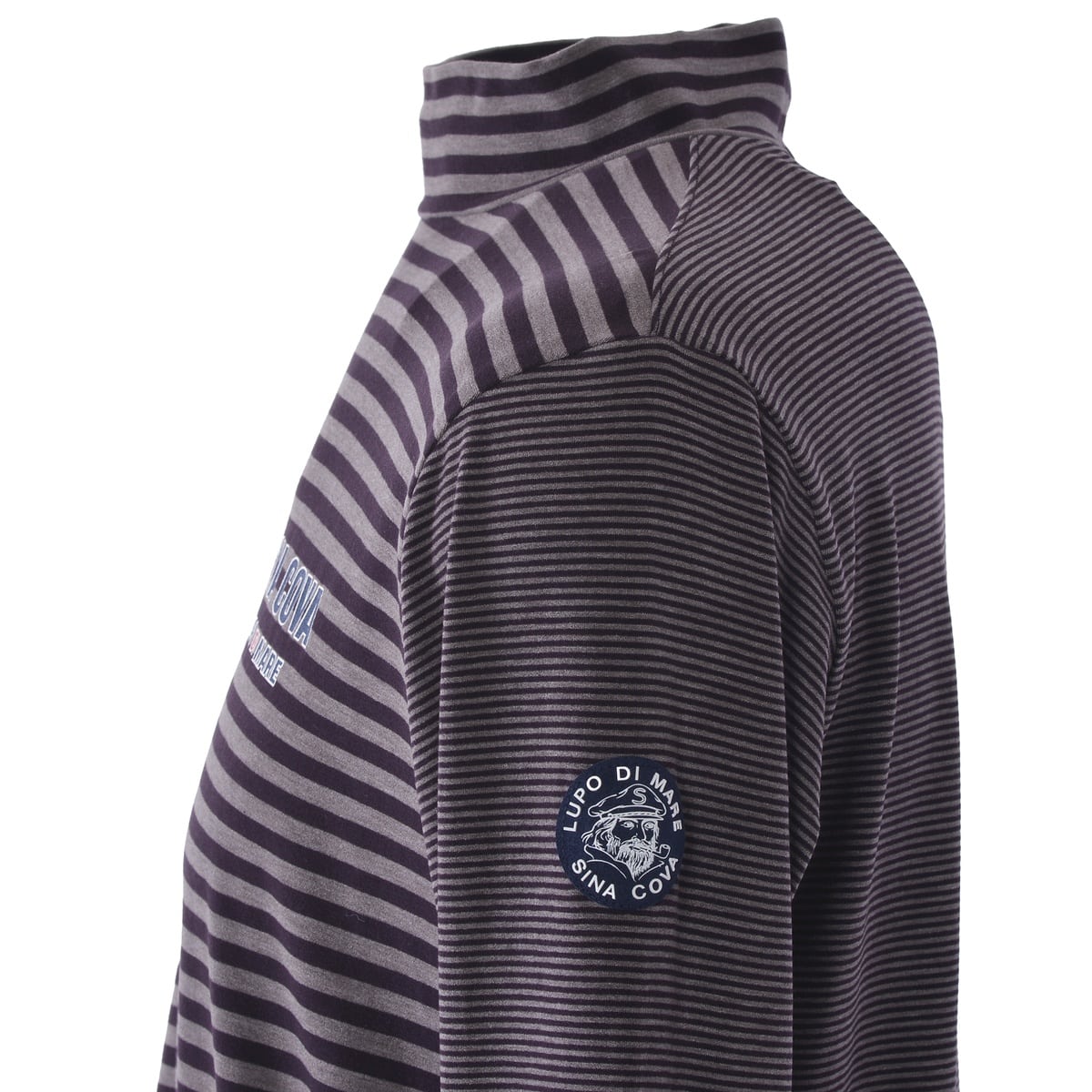 左胸のシンプルなロゴプリントがアクセントのマリンブランドらしいボーダー柄が特徴の長袖モックネックTシャツです。身頃と袖で異なるピッチのボーダーを組み合わせたクレイジーパターンが個性的で、一枚で着ても存在感があります。湿気や汗を熱に変えて保温する機能により、寒い季節でも快適な暖かさを実感できます。素材にはマイクロ抗ピルアクリル、マイクロレーヨン、ライクラを使用し、ソフトで滑らかな肌触りと優れたストレッチ性を実現。動きやすく、ピリングが起こりにくいため長く美しい状態を保てます。ベストのインナーとしてボーダーを見せたり、プルオーバーの下に重ね着するなど、多様なコーディネートが楽しめる一着です。・ゴルフウェア・ハイネック・ゴルフの寒さ対策【SINA COVA 2025 Autumn & Winter Style Book】掲載商品モデル着用 カラー:ホワイト男性 身長:180cm / 着用:L size