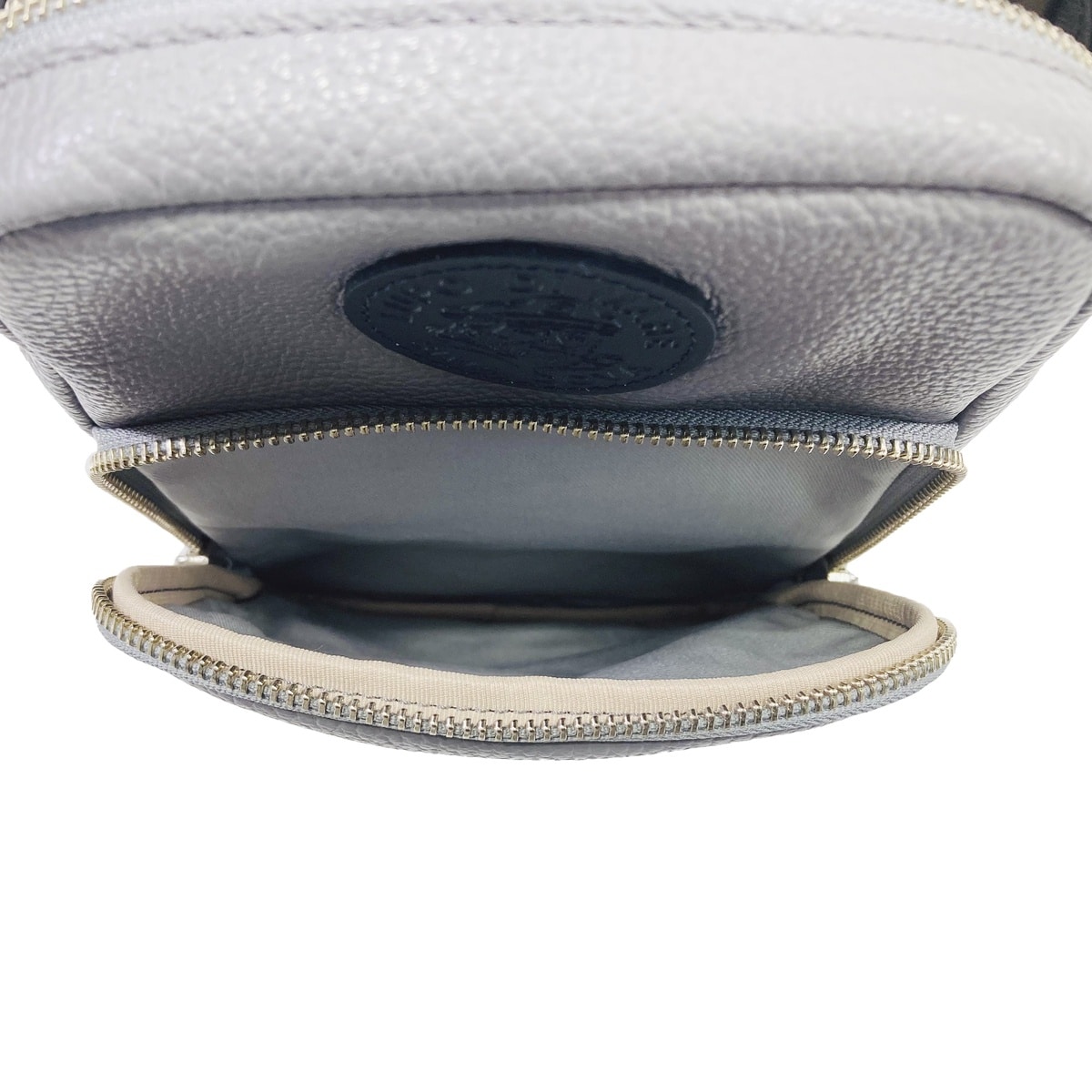 スムースレザーで型押しされたシナコバシンボルマークのワッペンをフロントにデザインしたショルダーバッグ(ボディーバッグ)です。イタリアの老舗タンナー、マスロット社製のシュリンク型押し牛革を使用しており美しい発色と均一なシボが特徴で、弱撥水機能を備えています。持ち運びに適したほどよいサイズ感で、日常使いやゴルフのカートバッグとしても最適です。高級感と個性を演出し耐久性とデザイン性を兼ね備えた、機能的かつ洗練された逸品です。・本革(牛革)使用・ポケット2個 内ポケット1個・長財布や500mlペットボトル収納可【SINA COVA 2025 Autumn & Winter Style Book】掲載商品