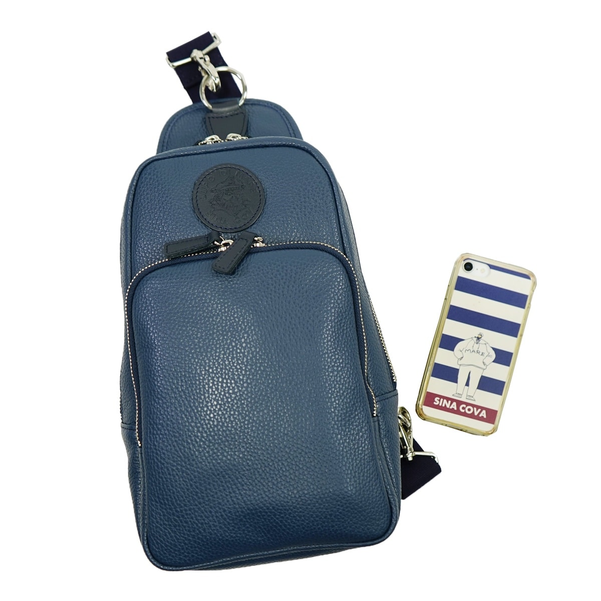 スムースレザーで型押しされたシナコバシンボルマークのワッペンをフロントにデザインしたショルダーバッグ(ボディーバッグ)です。イタリアの老舗タンナー、マスロット社製のシュリンク型押し牛革を使用しており美しい発色と均一なシボが特徴で、弱撥水機能を備えています。持ち運びに適したほどよいサイズ感で、日常使いやゴルフのカートバッグとしても最適です。高級感と個性を演出し耐久性とデザイン性を兼ね備えた、機能的かつ洗練された逸品です。・本革(牛革)使用・ポケット2個 内ポケット1個・長財布や500mlペットボトル収納可【SINA COVA 2025 Autumn & Winter Style Book】掲載商品