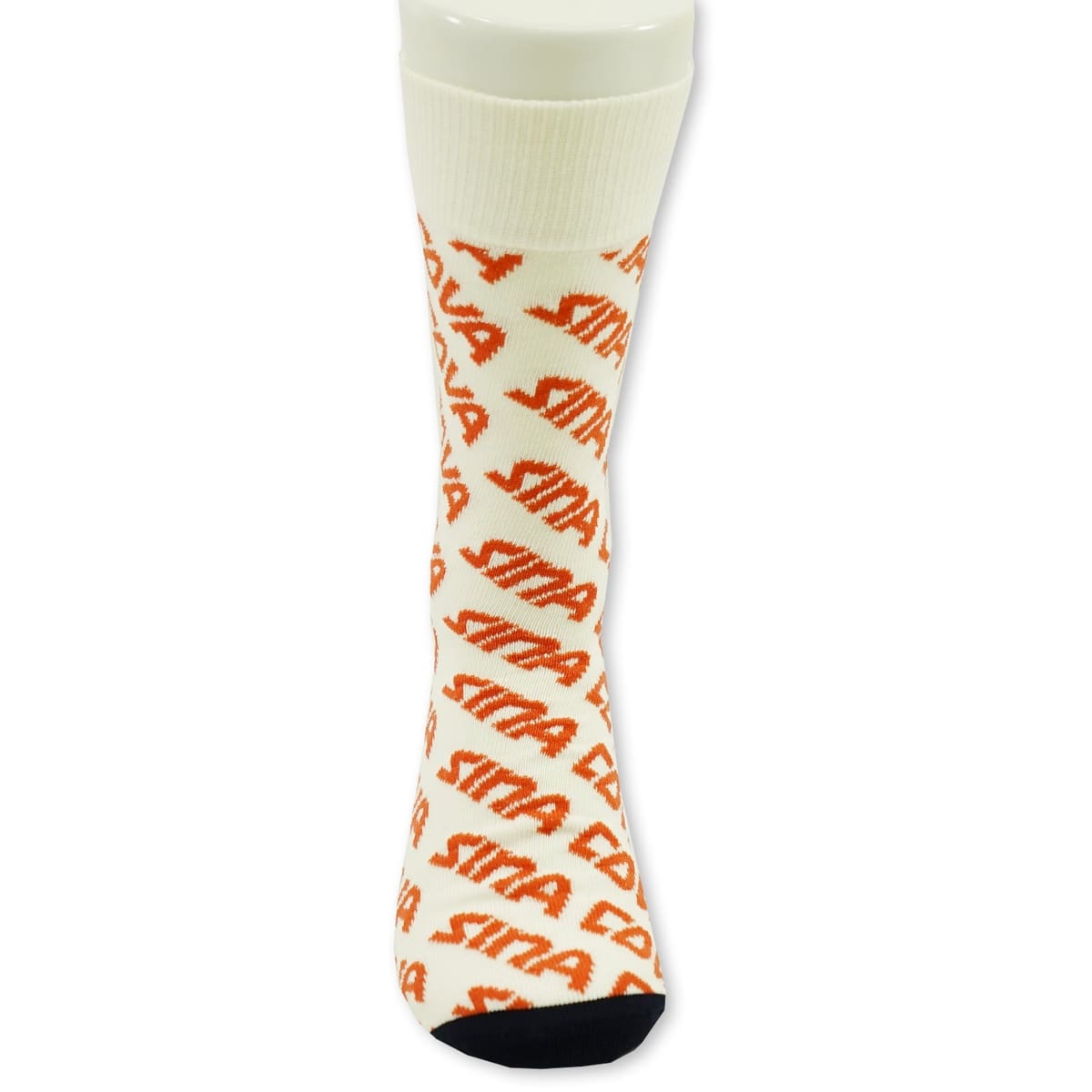 「SINACOVA」文字ロゴをジャガード編みの総柄でデザインしたロングソックスです。ソフトな風合いとしっかりとしたコシのある素材を使用しておりゴルフなどのスポーツシーンにもお勧めなアイテムです。・ギフトにお勧め・ロングソックス・ゴルフソックス・シナコバロゴ 総柄