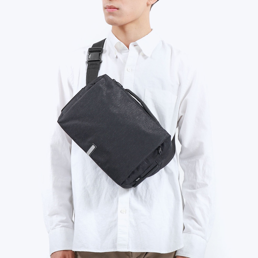 前後左右・自由自在にどんな向きでも使いやすいハンズフリーバッグ『ハンスリーSDH』。バッグ全体でぐるりと一周自在に使いこなせる、機能性を詰め込んだ設計が特徴的なボディバッグです。スリムなシルエットで、普段使いをはじめ荷物の少ない通勤時にも最適なサイズ感です。ミニマルスタイルの方にも快適にお使いいただけます。
