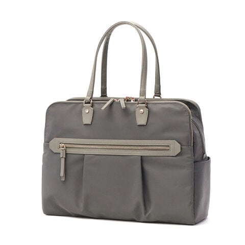 ノートPCの持ち運びに最適な、優秀お仕事バッグシリーズ 『ラポルテム』。テレワークと出社を組み合わせたハイブリットワークに対応し、荷物が多い方におすすめな26L容量のトートバッグです。PC収納をはじめ、充実の収納スペースや移動時に便利なセットアップ機能を搭載。メイン気室、フロントポケットには薄暗い場所でも荷物を見つけやすいよう、明るいグレーのストライプ生地を採用するなど、使いやすさにこだわりました。スーツにもオフィスカジュアルにも合わせやすい、すっきりとしたきれいめデザインに仕上がっています。