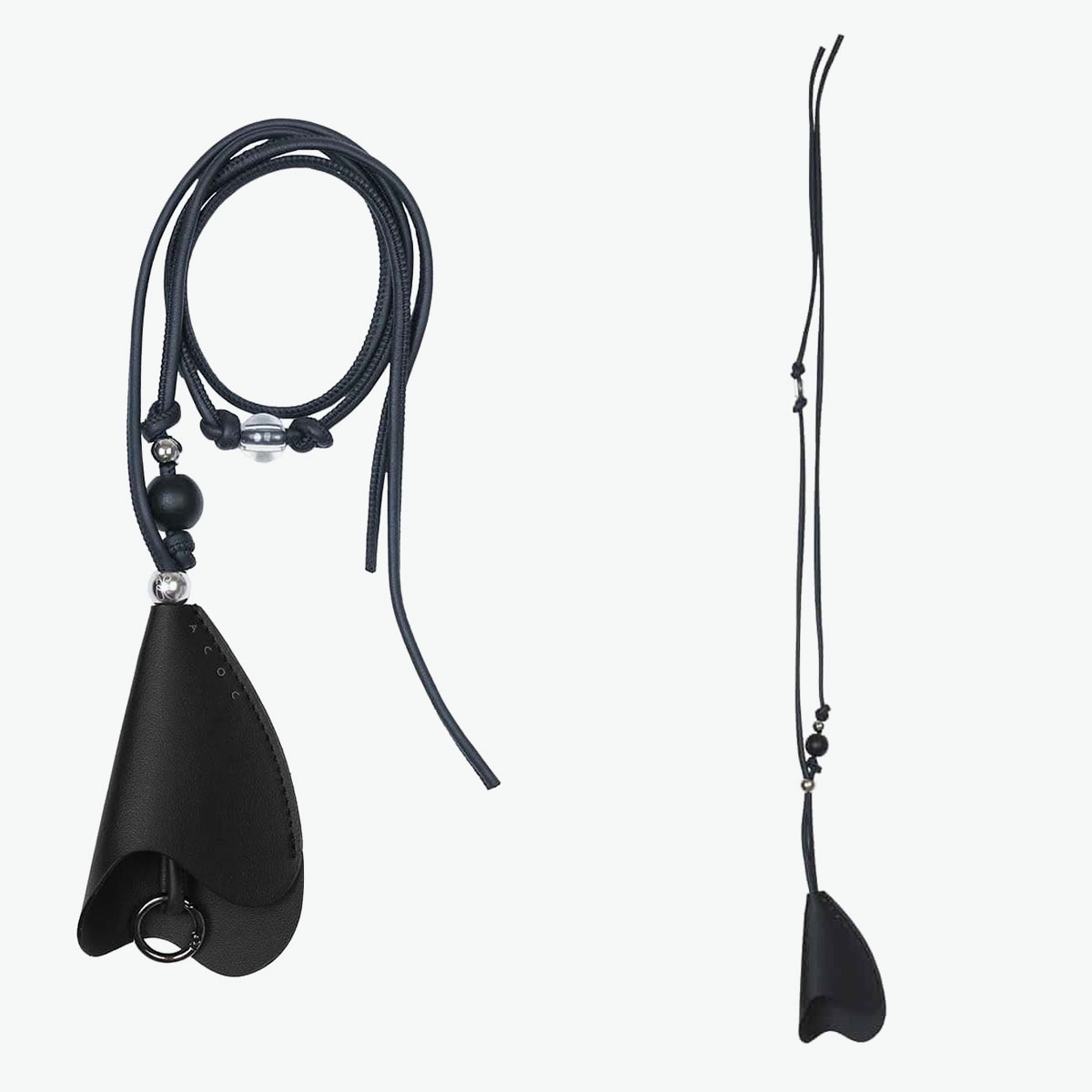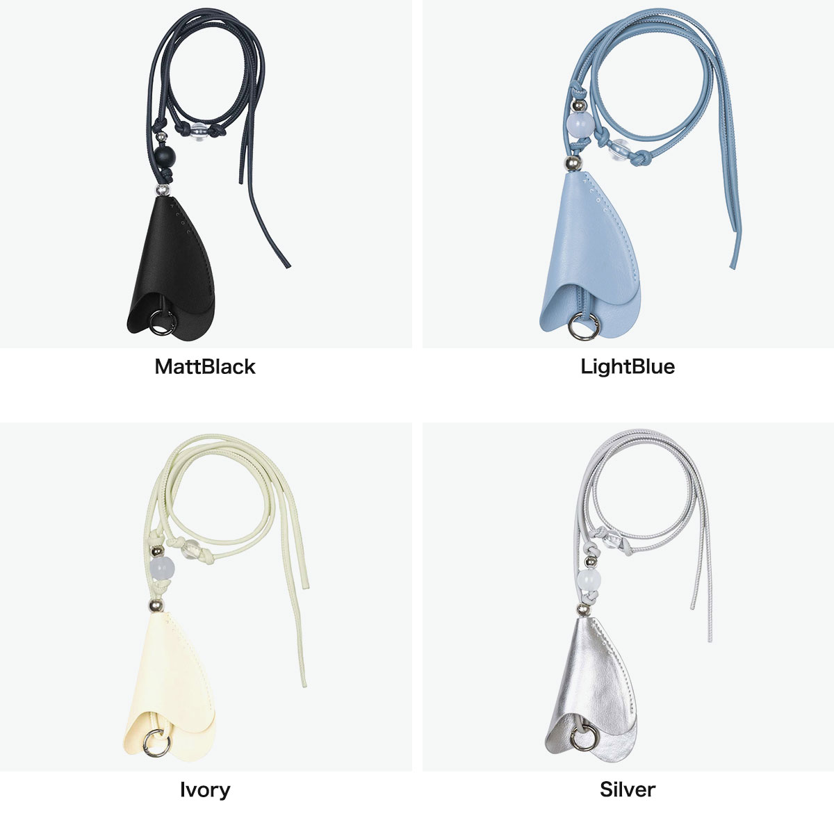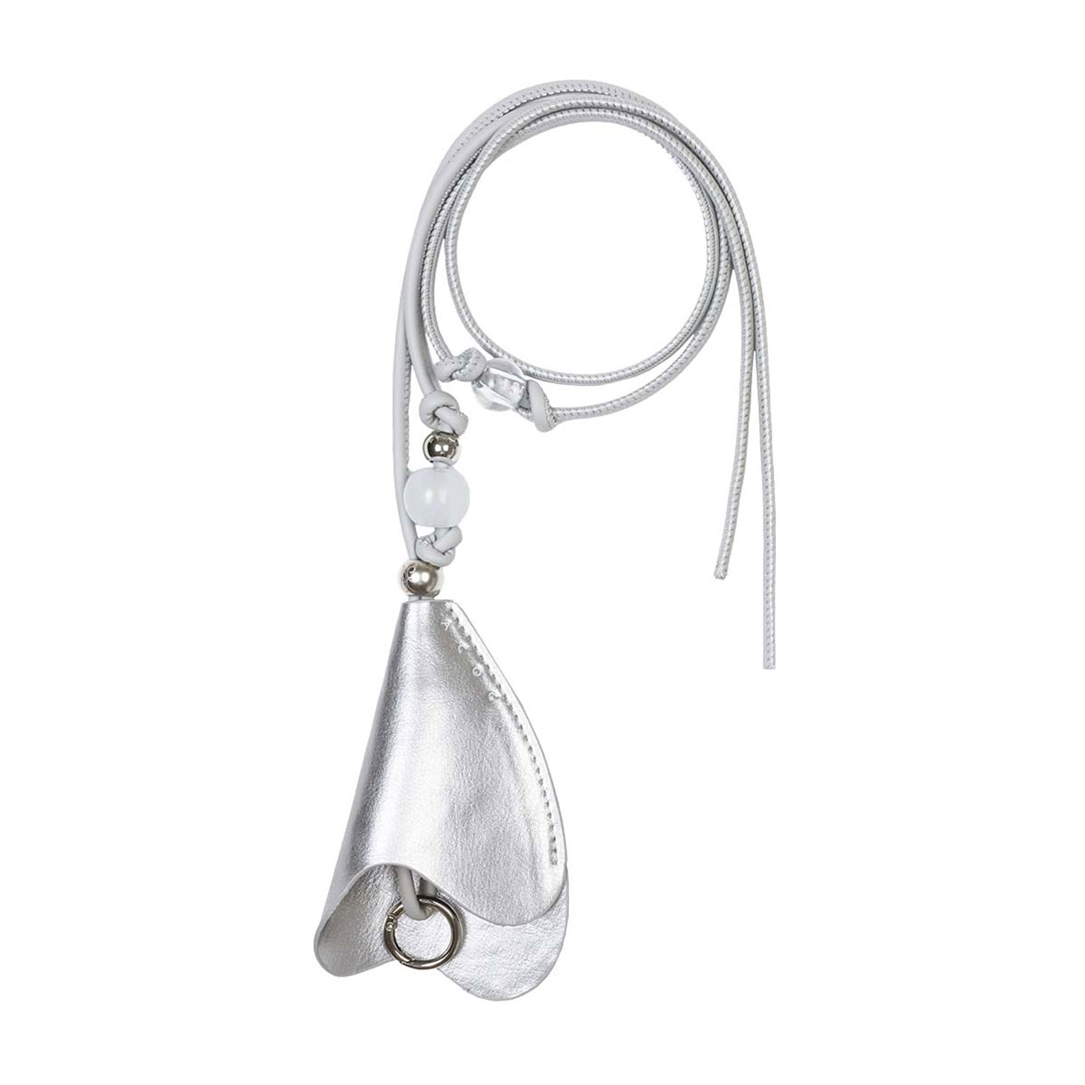 カラーフラワーを思わせる造形的なカーブシェイプが印象的な、ストラップタイプのキーケース。モチーフ内部には着脱可能なキーリングを備え、鍵やスマートキーをスマートに収納できます。ストラップにはノット(結び目)とボールのディテールをあしらい、ミニマルなデザインにさりげないアクセントをプラス。首掛けや斜めがけはもちろん、キーホルダーとしてバッグに結んで使うなど、アクセサリー感覚で楽しめます。
