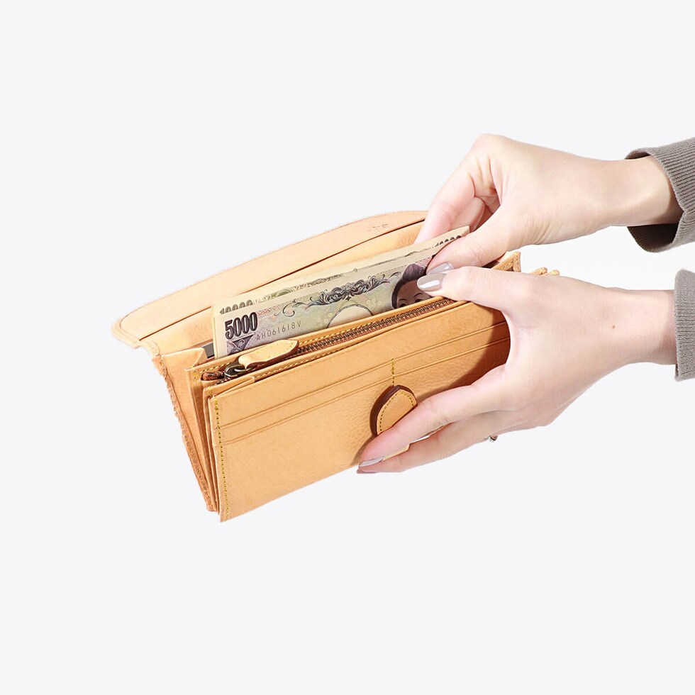L字ファスナータイプで小銭入れを大きく開閉