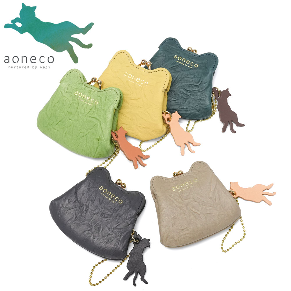アオネコ ポーチ aoneco 小物入れ 小さめ ブランド レディース がま口 ミニ コンパクト マイクロポーチ かわいい 可愛い 革 本革 牛革 レザー 猫 ネコ 保護猫 保護ネコ ねこ 日本製 マイクロがま口ポーチ 小さい