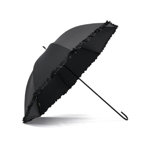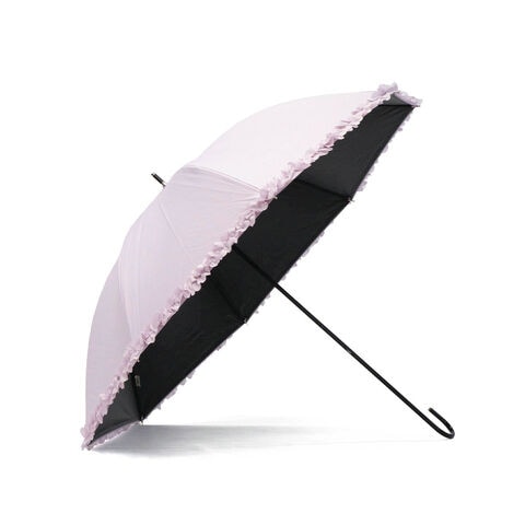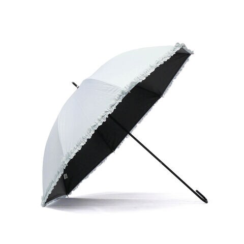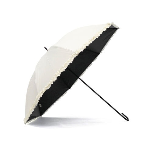 上品で可愛らしいフリルがポイントの晴雨兼用長傘。UVカット率100%と高い遮光・遮熱性で日焼け対策にピッタリ!裏面は全色黒地となっており、地面からの照り返しによる日焼けも防ぎます。