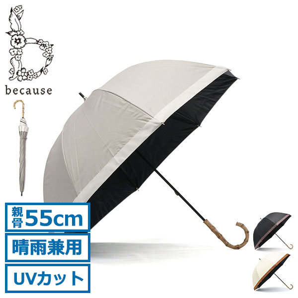 ビコーズ 傘 because レディース おしゃれ 55cm 長傘 日傘 ブランド 晴雨兼用 大人 大人女子 軽量 UVカット 完全遮光 遮断効果 紫外線対策 かわいい バンブー バイカラー 裏面黒 PUグログラン ラージ 女性