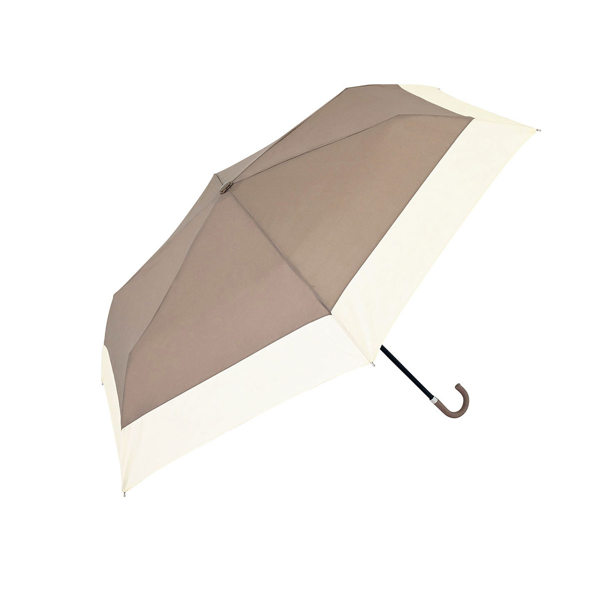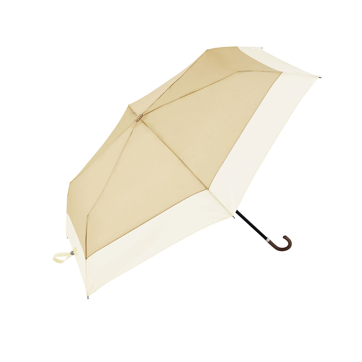 どんなシーンにも合わせやすいバイカラーの優しい色合いがフレッシュな印象の折りたたみ傘。防水撥水効果により紫外線遮蔽率80%で、雨傘としての機能に加え、日よけ用としても使用できるアイテム。開閉時に安心のセーフガード付きなど細部にまでこだわりました。上品なバイカラーデザインとコンパクトなサイズ感で使い勝手抜群です。