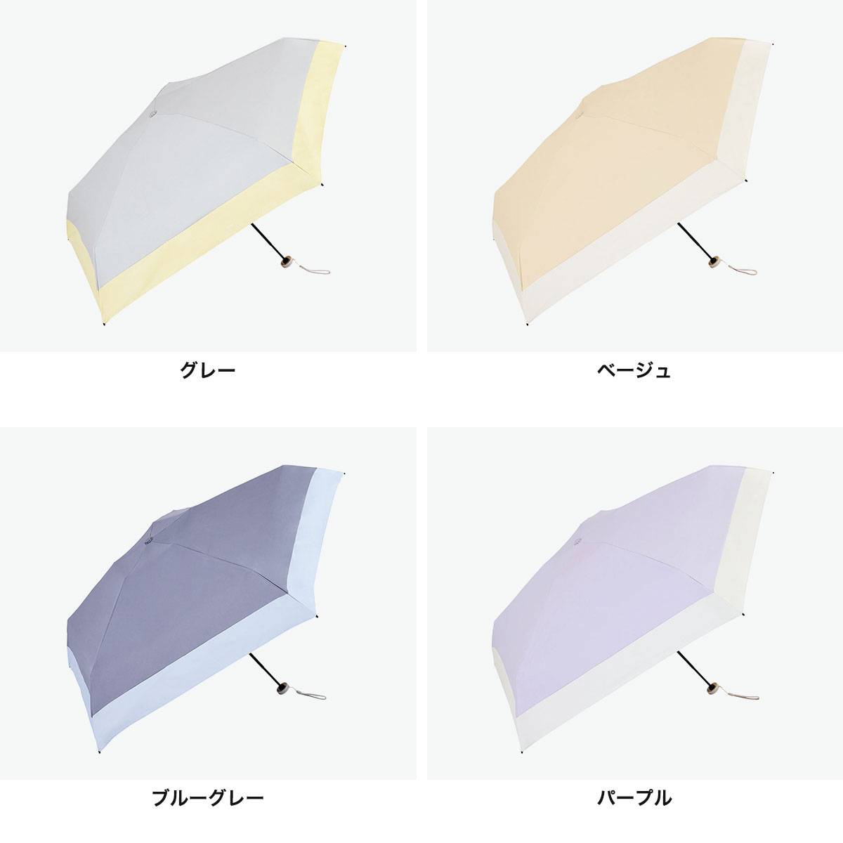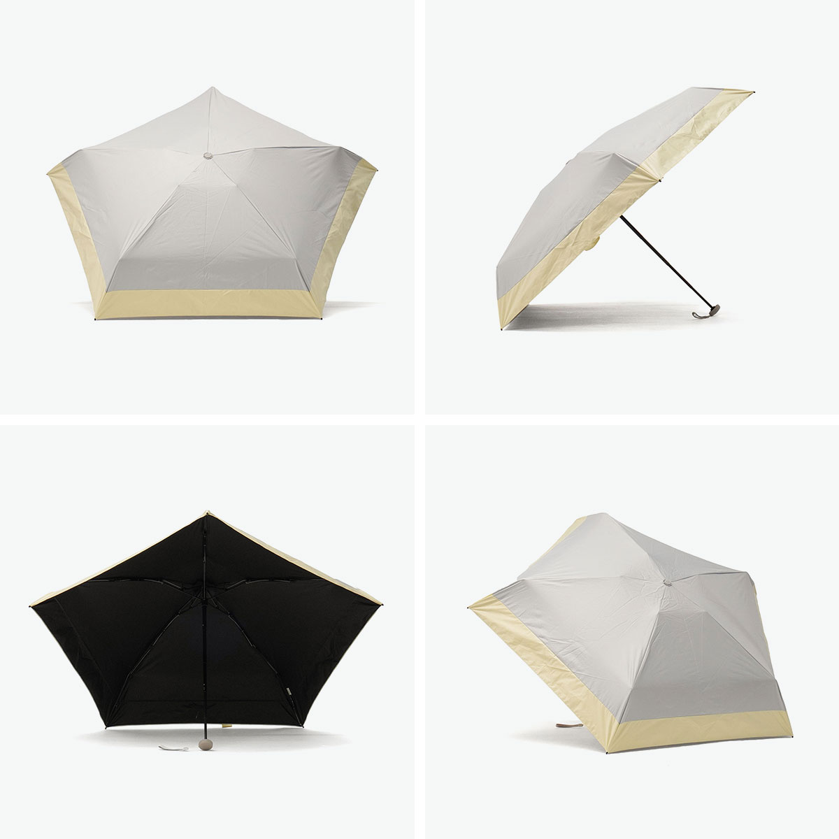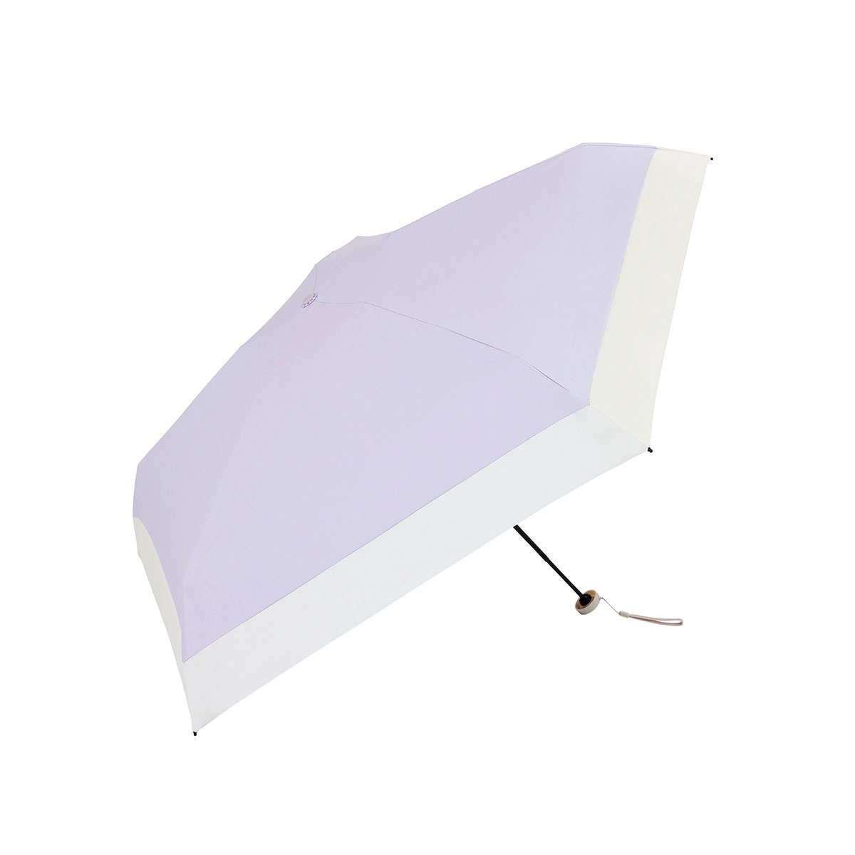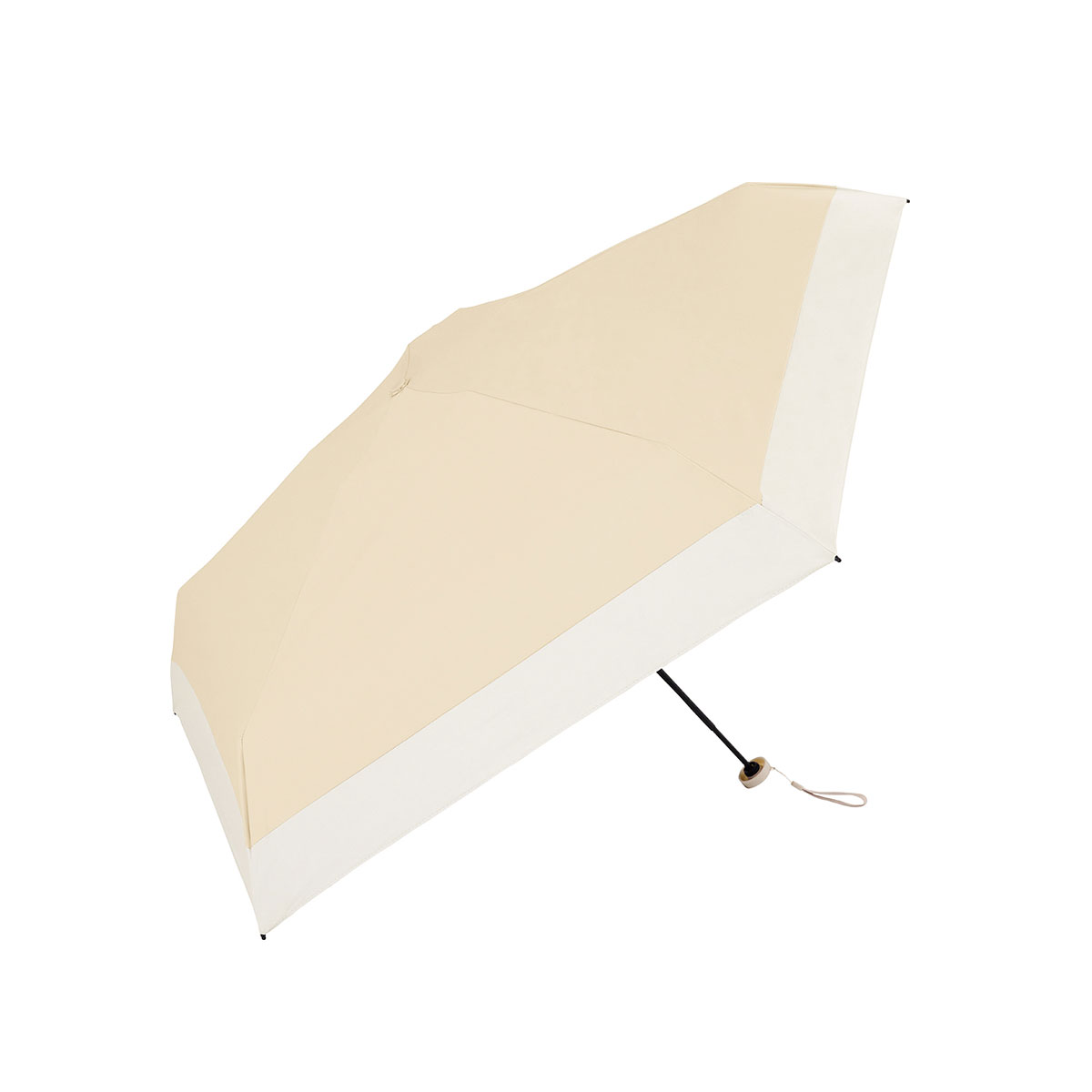 シンプルな無地にバイカラーの切り替えが映える、上品な晴雨兼用折りたたみ傘。遮光率100%・UVカット機能により、紫外線や熱をしっかり遮り、日傘としても活躍します。5本骨構造による約170gの軽量設計で、コンパクトに折りたためてバッグ内でもかさばらず、持ち運びも快適。通勤やお出かけにも最適です。内側の黒コーティングが照り返しを抑え、コンパクトながら高い遮光性を発揮します。