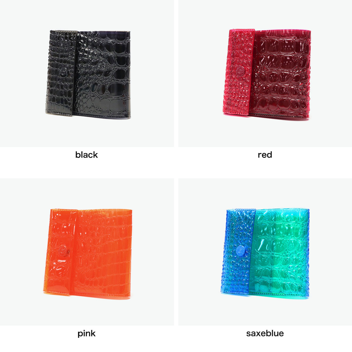 「隠すものは何もない/Nothing to hide」をコンセプトに、色や中身の透け感を楽しめる三つ折り財布。縫い目は入れずにラグジュアリーな小物の念引きやステッチを熱加工により表現しています。2種の異なる色の重なり合いと、エンボス加工を表面に施したキャッチーな見た目が、シンプルながらも存在感を放つアイテムです。