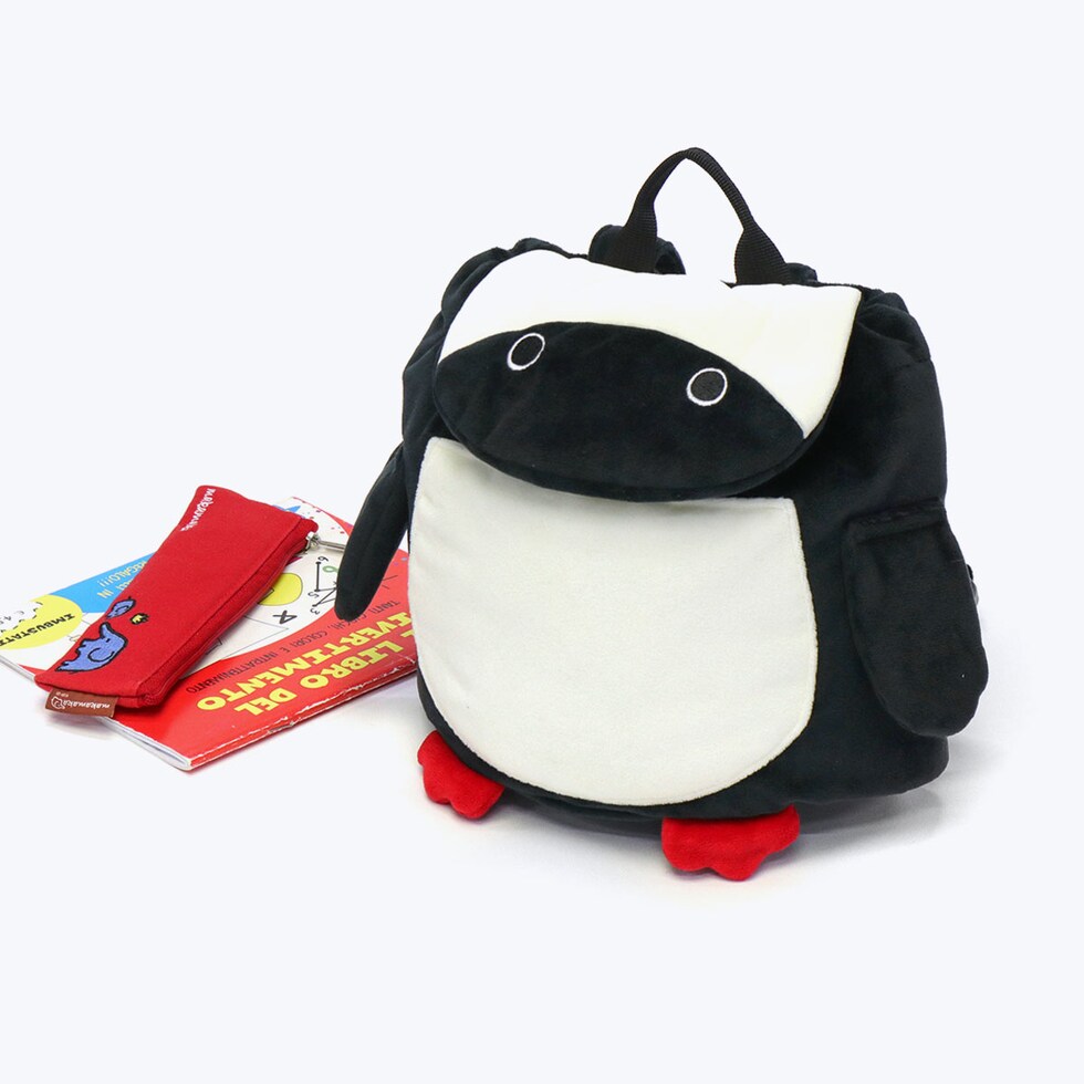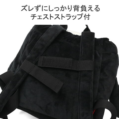 一升餅を入れて背負える大きさのベビー用リュックです。表地にはふわふわの手触りが心地良いトリコット素材を使用し、ぬいぐるみのような仕上がりに。肩ズレを防ぐチェストストラップがついている為、動き回るお子様にも安心のアイテムとなっています。