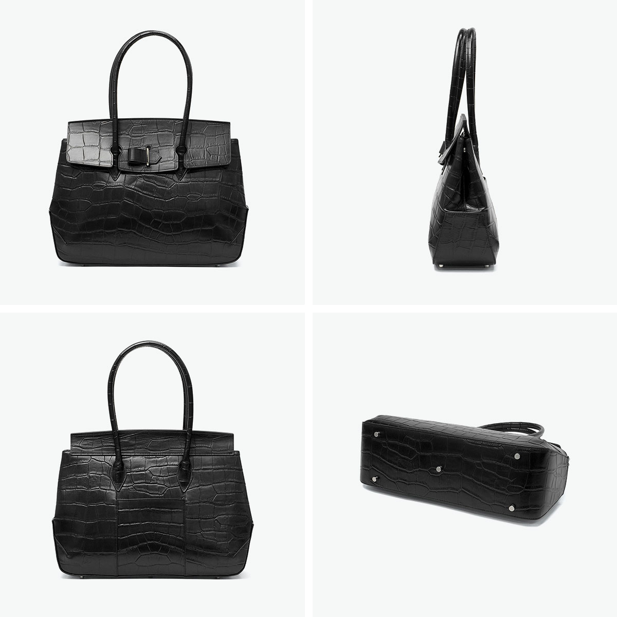 革の聖地・姫路の職人が手がけた、品格漂うクロコダイルエンボスレザーのフラップトート。しなやかさでコシのある国産の牛革の素材は、傷・汚れや水にも強いタフで実用的な仕上がりです。抑揚の効いた構築的なデザイン設計をベースとしたボディに高く立ち上がったハンドルを備え、凛々しく品格ある魅力に包まれています。フラップを収納すればオープンスタイルでも使用可能。オンオフ兼用のバッグとして重宝する、大人のためのハイパフォーマンスな逸品です。