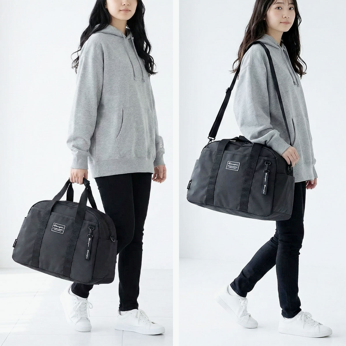 カジュアルシーンで人気『Champion/チャンピオン』の、選べるロゴカラーが映えるスタイリッシュなボストンバッグです。部活やジム通いにちょうどいい32L容量で、A4サイズをゆったり収納可能。耐久性と耐水性に優れたコーティング素材を採用し、タフなシーンも安心。大きく開くダブルファスナーで出し入れしやすく、2WAY仕様で持ち方も自在。チャームが付けられるDカン付きで、自分らしいアレンジも楽しめます。