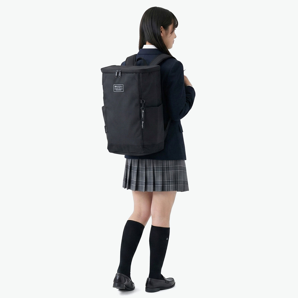 ブラックベースに映えるロゴカラーが印象的なChampionのボックス型スクールリュック。シンプルながらも洗練されたデザインで、通学や通勤からタウンユースまで幅広く活躍します。33Lの大容量設計で、A4・B4サイズの書類や教科書、部活用品もしっかり収納できます。15.6インチ対応のPCスリーブを備え、ノートパソコンの持ち運びも安心です。軽量なリサイクルポリエステル素材を使用し、環境にも配慮したバッグになります。性別や年代を問わず使いやすいデザインで、毎日のスタイルに自然と馴染みます。