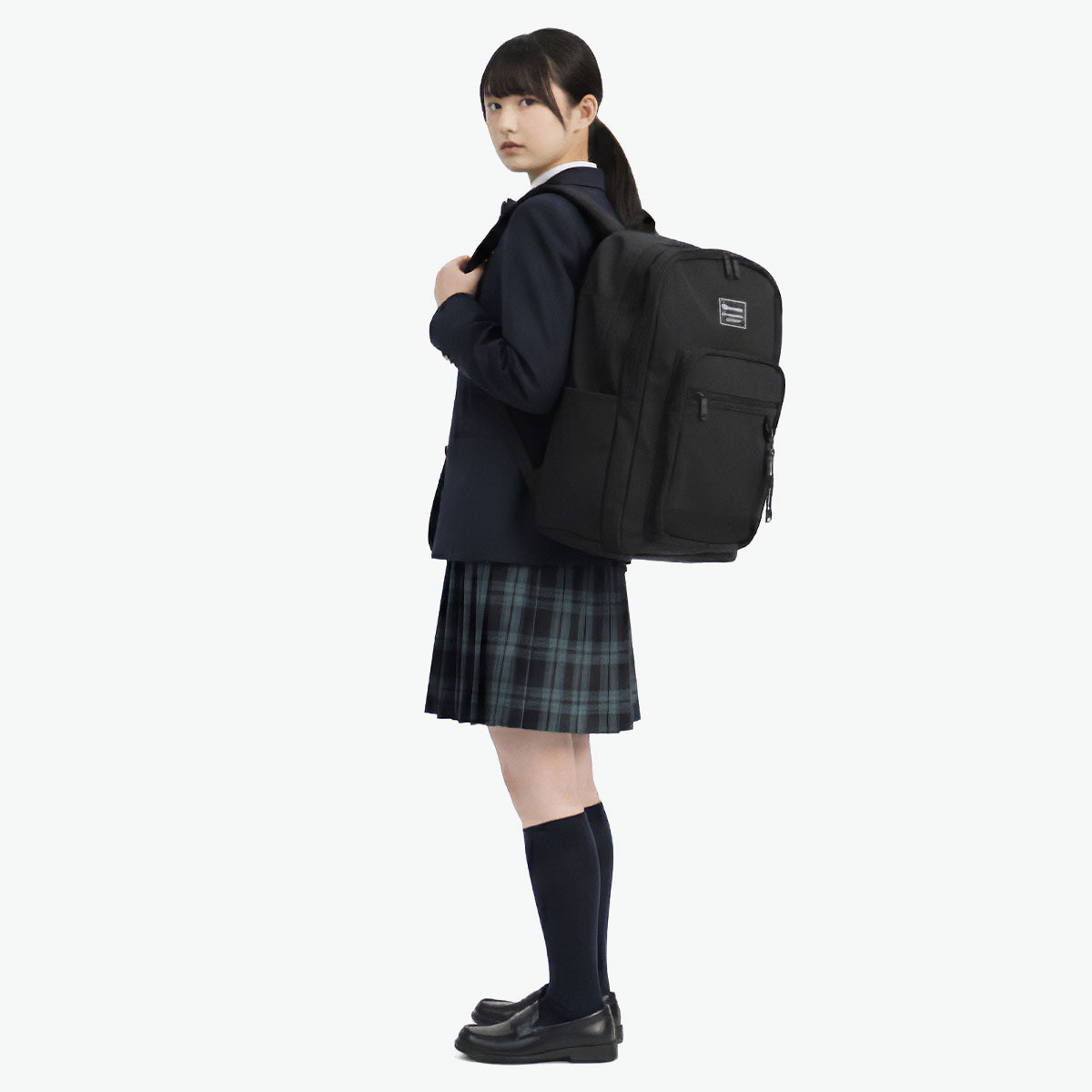 ブラックベースに映えるロゴカラーが印象的なChampionのラウンド型スクールリュック。シンプルながらも洗練されたデザインで、通学や通勤からタウンユースまで幅広く活躍します。36Lの大容量設計で、A4・B4サイズの書類や教科書、部活用品もしっかり収納できます。必要なものをすぐに取り出せる、使い勝手の良さも魅力の2層式構造を採用。15.6インチ対応のPCスリーブを備え、ノートパソコンの持ち運びも安心です。軽量なリサイクルポリエステル素材を使用し、環境にも配慮したバッグになります。性別や年代を問わず使いやすいデザインで、毎日のスタイルに自然と馴染みます。