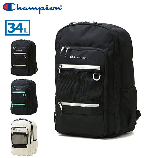 チャンピオン リュック Champion レディース メンズ 通学 大容量 軽量 撥水 かわいい おしゃれ カジュアル スポーツ 女子 男子 中学生 高校生 大学生 バックパック PC シンプル 部活 A4 B4 34L