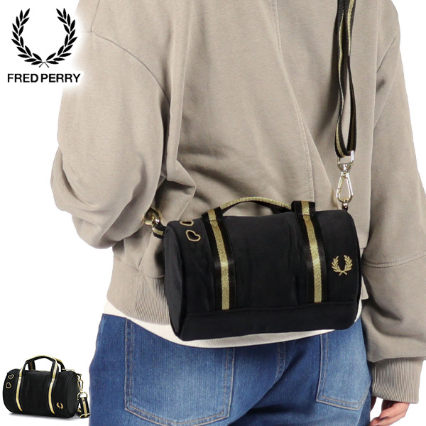 フレッドペリー ショルダーバッグ FRED PERRY レディース 斜めがけバッグ 軽量 バレルバッグ 斜めがけ 大人 バッグ 斜め掛け 軽い 小さめ 2WAY ミニショルダー ボストン バレル MINI VELOUR