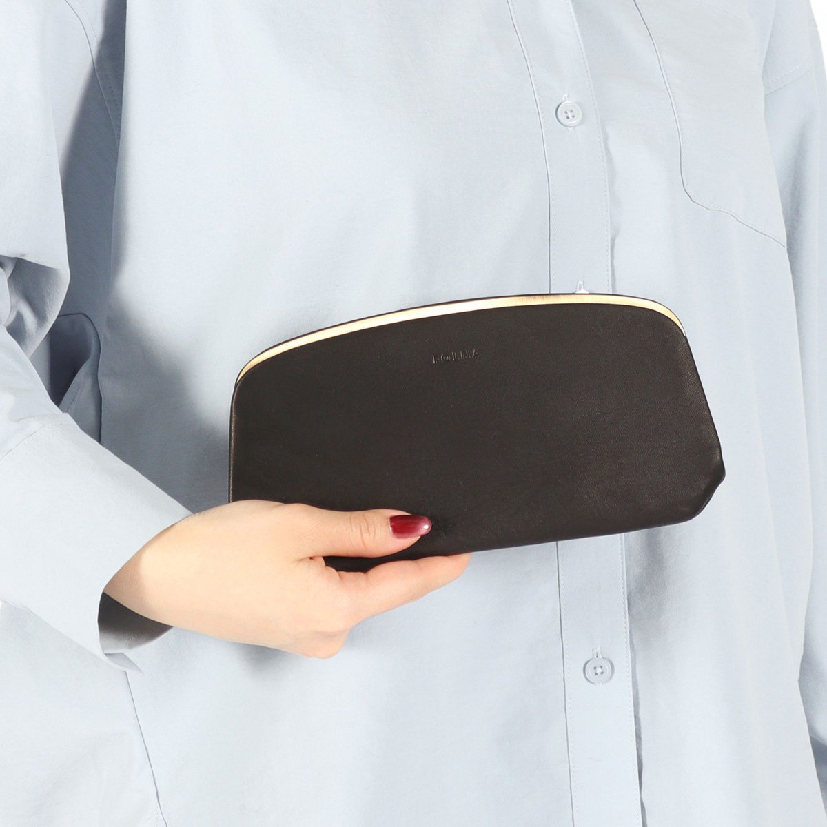 手にしっとりとなじむ柔らかな手触りの牛革を使用した「FOLNA RD」の人気シリーズ『SOFT LETHER』。無駄な装飾のない、シンプルかつミニマルなルックスの天溝がま口のお財布。がま口についている開閉のパーツが内側についている"天溝口金”は、簡単な動作で開閉できる優れた仕掛けのデザイン。前面と背面に札入ポケット2箇所を配し、小銭入れは中央のマチ付きポケット部分となっており、あえてファスナーを付けずワンアクションで出し入れが可能な仕様です。日本の職人の美しい手仕事を感じていただける上質な仕上がりとなっています。