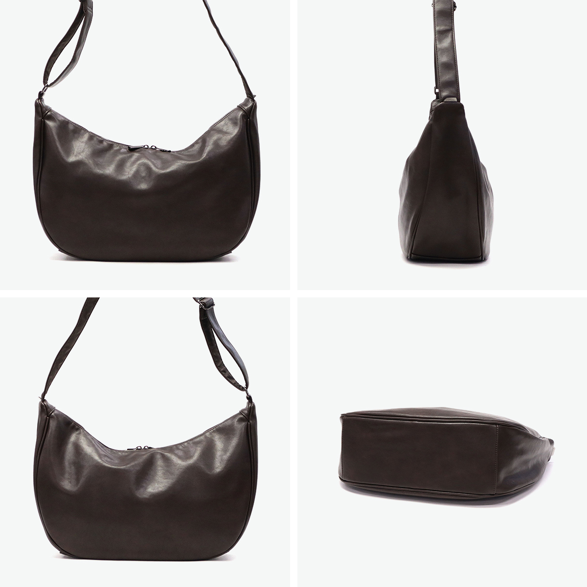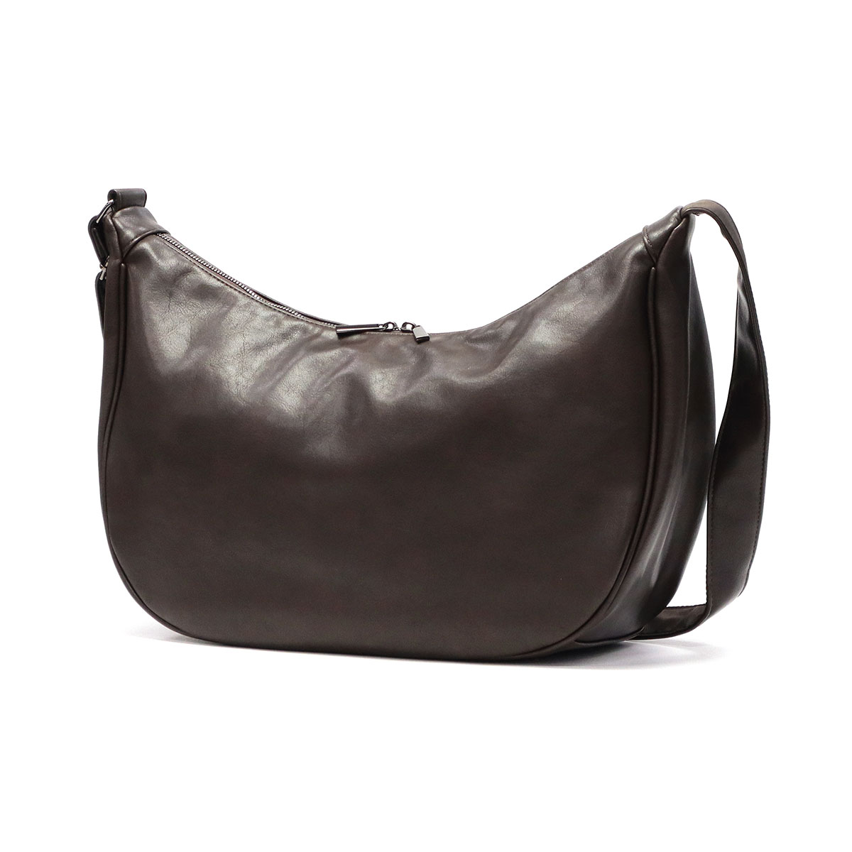 流れるようなラインが特徴のショルダーバッグです。肩掛け時も体にフィットし、美しいフォルムをキープします。レザーのような上質な質感と撥水性を兼ね備え、シーンを問わず活躍。広めのマチで収納力も高く、自立する設計で使わない時もスマートに佇みます。