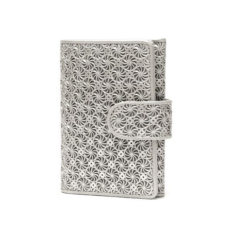 独特なスクリューデザインが人気の『GIRASOLE/ジラソーレ』シリーズの二つ折り財布。牛革に型押しと型抜きを施した、上品でいて軽やかな仕上がりが特徴です。小さい財布だと収納力に不安があるという方にちょうど良い中型サイズで、2層式の札入れや豊富なカードポケットなど、機能面も充実のアイテムです。