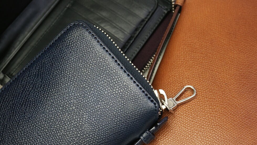 本体には、レーデルオガワ社の最高峰の技術で染め上げた馬革のコードバンに型押しを施した、キズや水に強い生地を採用。内装も質感の良いカーフレザー総革張りで贅沢な仕様に。ジップには、YKKに別注した高級ファスナー「エクセラNo.8」の幅広テープを使用し、嫌みのない高級感を持ち合わせています。