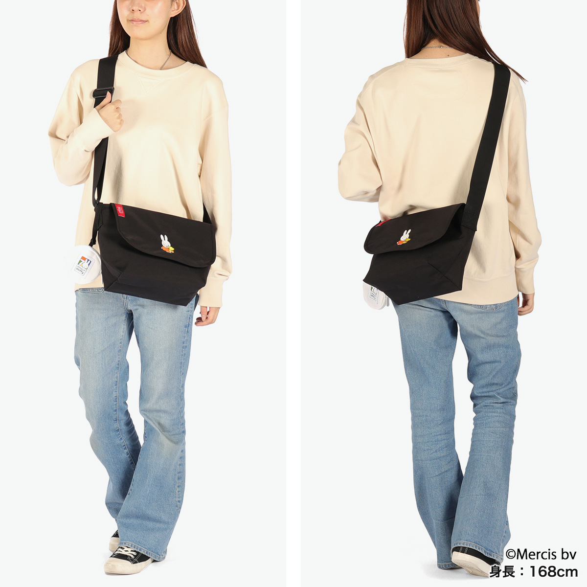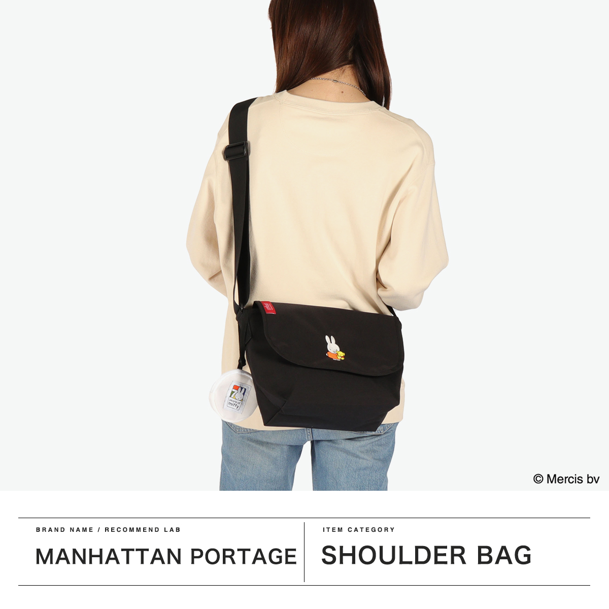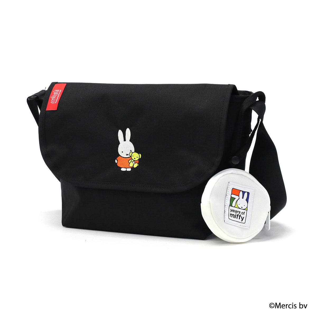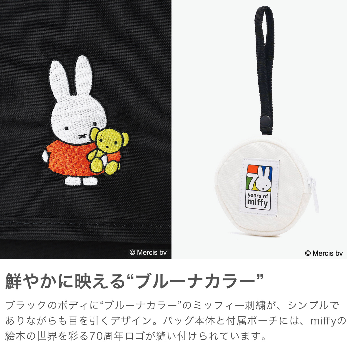 2025年に誕生70周年を迎えるオランダ生まれの世界的人気キャラクター『miffy』とのコラボレーションコレクション第2弾が登場しました。Manhattan Portageの定番ブラックボディに“ブルーナカラー”が鮮やかに映える、刺繍のワンポイントが目を引く可愛らしいデザイン。Miffy70周年ロゴを配したポーチ付きで、節目にふさわしいスペシャルな企画になっています。