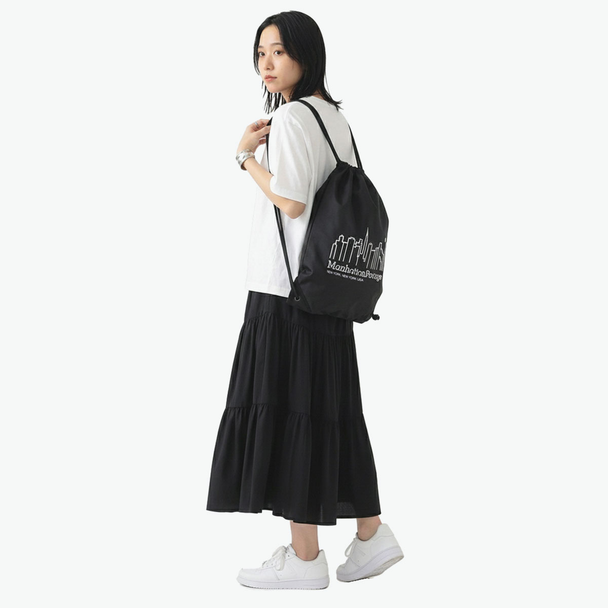 あらゆるスポーツやアクティブシーンにぴったりのナップサックです。2本のドローコードはバッグの開閉だけでなく、ショルダーストラップとしても使用可能。フロントにはブランドを象徴するスカイラインロゴを大胆にあしらい、シンプルながらも存在感のあるデザインに仕上がりました。
