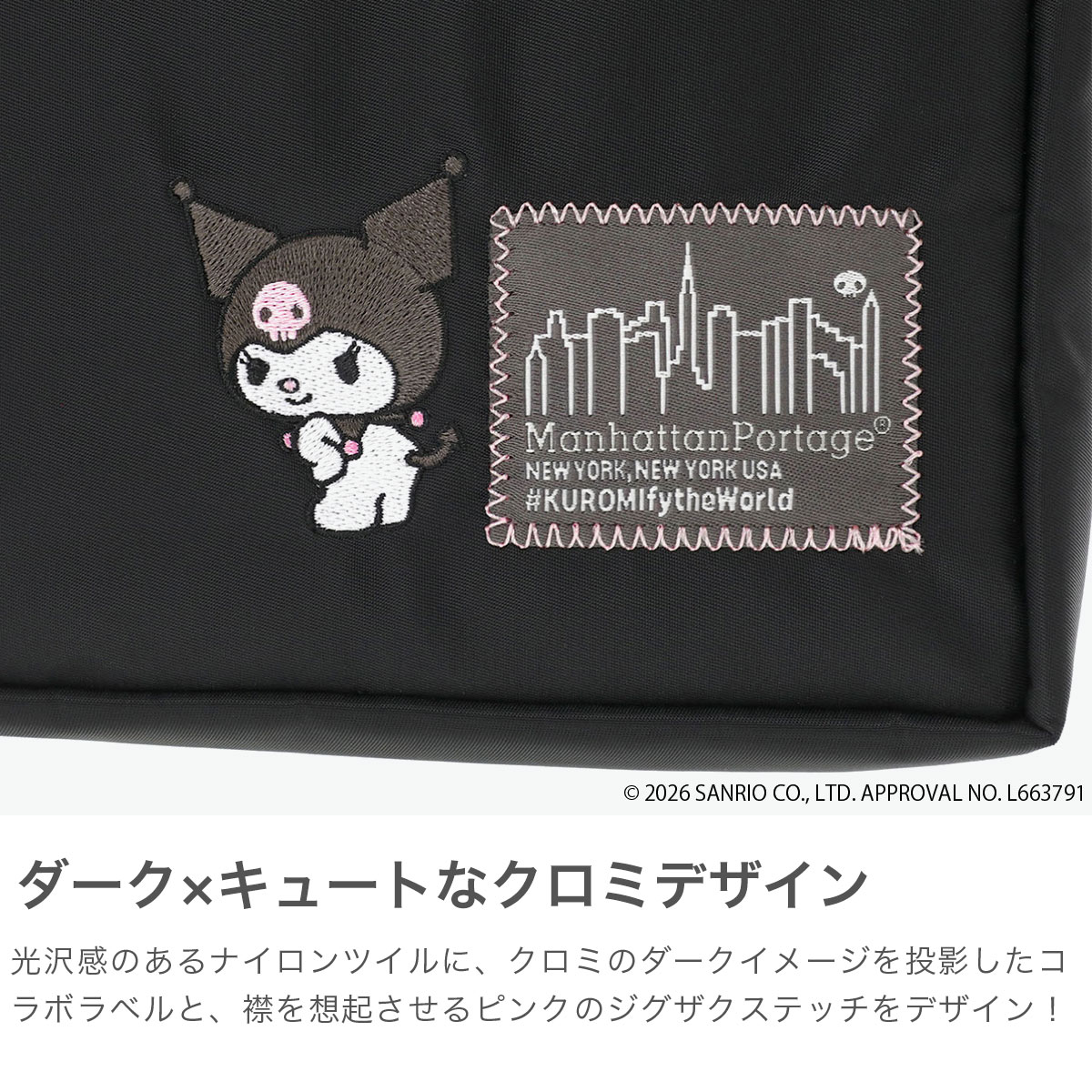 2005年のデビュー以来、世界を股にかけファンを魅了し続けてきた人気サンリオキャラクター『クロミ』とManhattan Portageのコラボが実現。クロミのダークイメージを投影したスペシャルコラボラベルと、彼女の襟を想起させるピンクのジグザグステッチが一番のハイライトとなっているミニショルダーバッグです。素材は、シックな光沢でスタイルを格上げするナイロンツイルを採用。甘さとスパイスを絶妙にブレンドした、華やかでちょっとモードな"甘辛バランス”が見どころです。