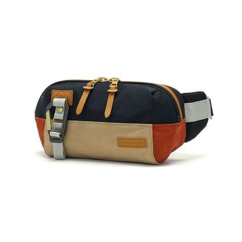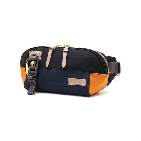 特殊加工を施したナイロンツイル生地を使用したシリーズ『link/リンク』のウエストバッグ。ブラックとゴールドで仕上げたオリジナルのカラビナと遊び心のある配色がポイントのスタイリッシュなルックスは、スタイルのアクセントに。軽量かつコンパクトなサイズ感で、休日の外出に活躍すること間違いなしのアイテムです。