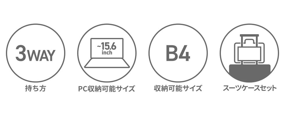 メインルームは、両開きで広げられるスーツケースのようなつくりがポイント。タオルや衣類、B4サイズの書類も楽々収納できる、33Lの大容量設計となっています。アウトスペースには、クッション性を設けたPC収納や、細かなツールの整理に役立つオーガナイザーポケットなど、ビジネス向けの機能も豊富に装備しました。さらに背面には、スーツケースと連結して持ち運べるセットアップ機能を搭載し、旅先や出張先での移動シーンをスムーズにアシストしてくれます。