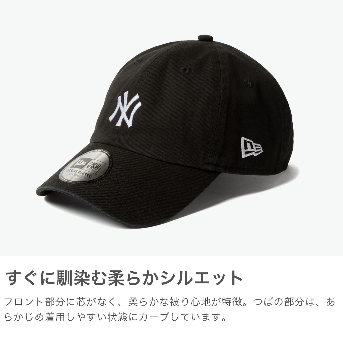 軽量で柔らかな被り心地が魅力の「Casual Classic」をベースに、各球団の本拠地にちなんだモチーフをアンダーバイザーへ刺繍で表現したコレクション。フロントに芯を入れないソフトなシルエットと、トップステッチを省いたミニマルなデザインが特徴です。リアにはスナップボタン式のイージースナップを採用し、簡単にサイズ調整が可能。バッグやベルトループに取り付けられる実用性も備えています。