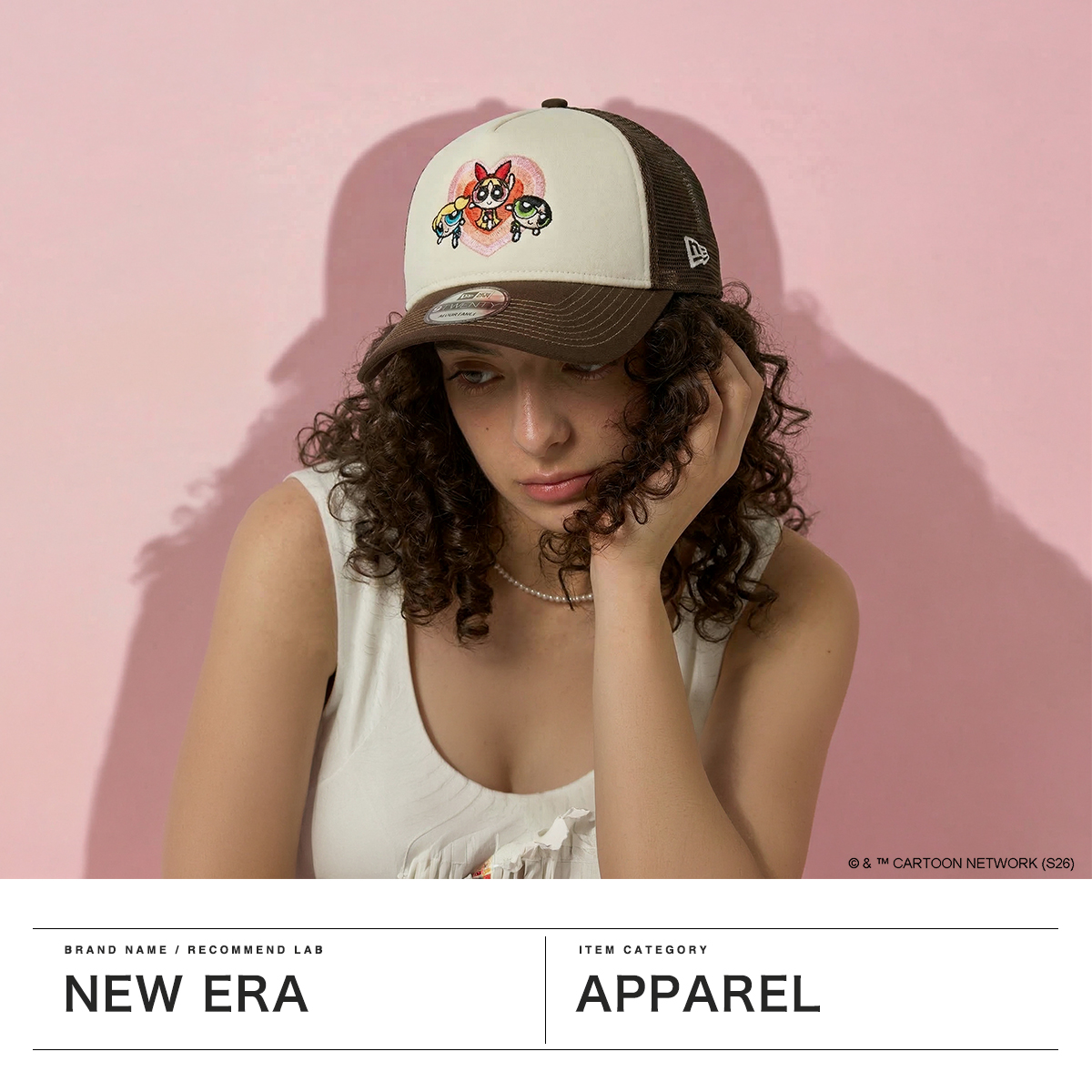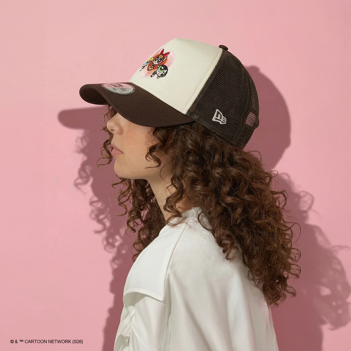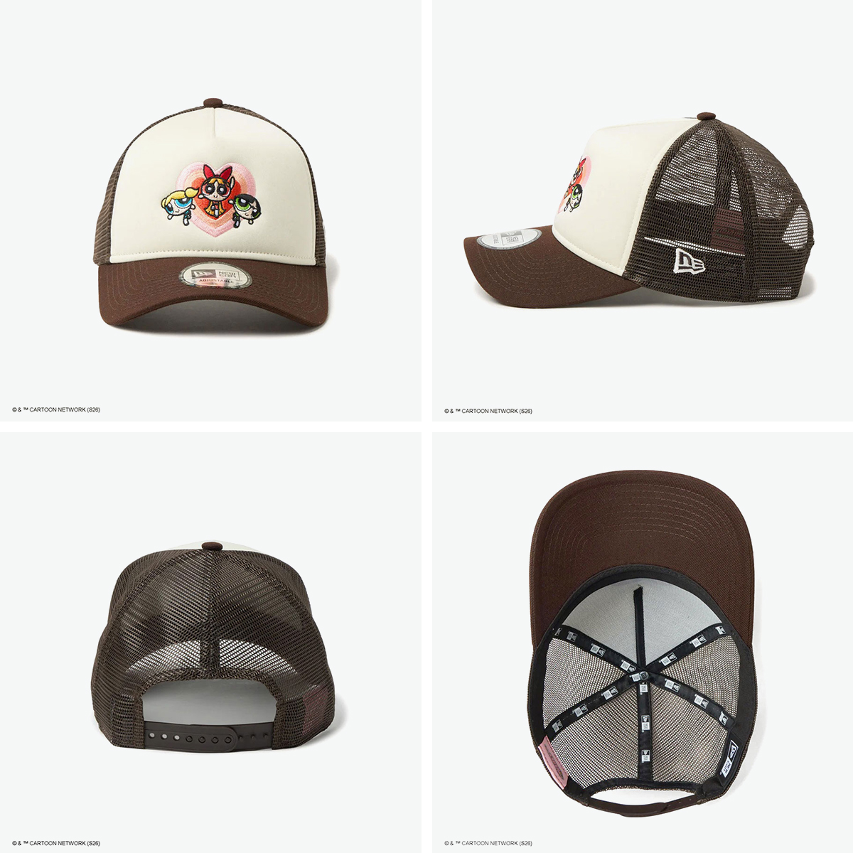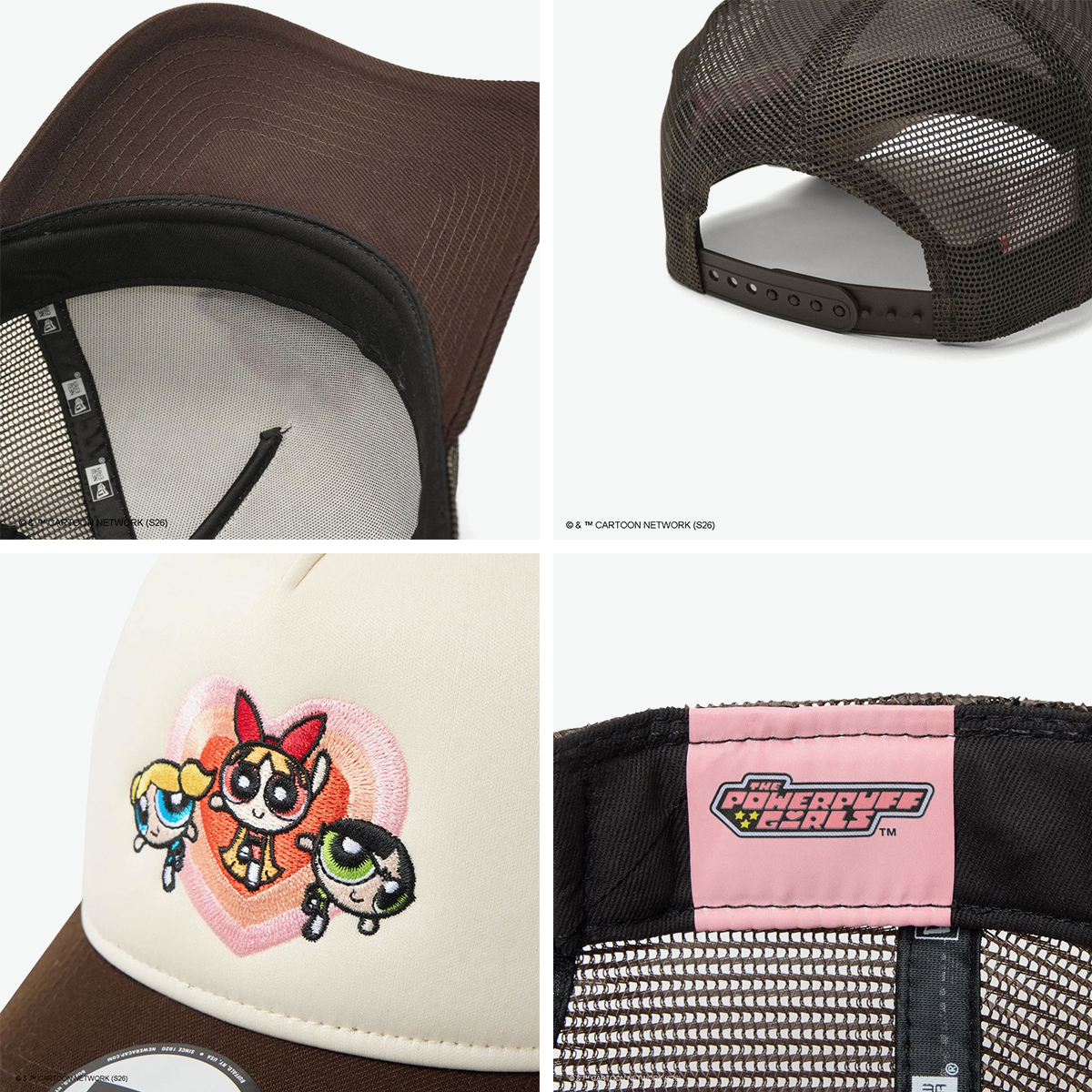 カートゥーンネットワークの人気アニメ『パワーパフガールズ』とのコラボキャップ。ブロッサム、バブルス、バターカップの刺繍やラインストーン、カモ柄などで世界観を表現したデザインです。シルエットは9FORTYをベースにしたA-Frame仕様で、フロント1枚パネルの立体感あるフォルムが特徴。型崩れしにくく、やや深めの被り心地で安定感も◎。カーブバイザーとサイズ調整可能なアジャスター付きで、快適に着用できます。