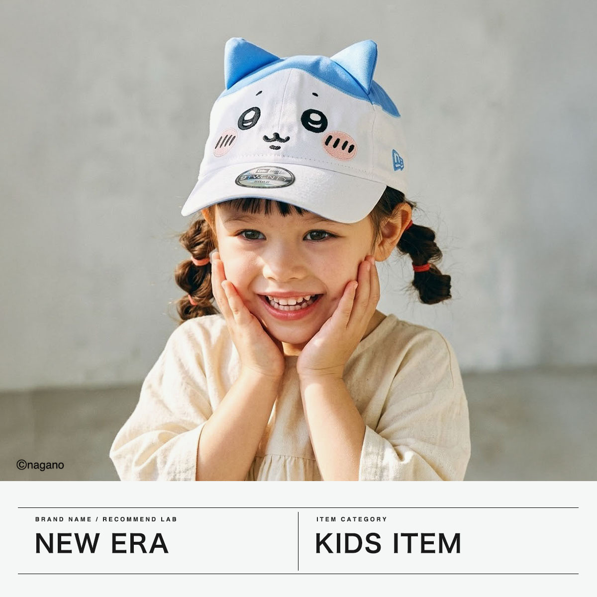 大人気キャラクター『ちいかわ』とのコラボコレクションより、キッズキャップが登場。ちいかわやハチワレになりきれる耳付きデザインが魅力です。9TWENTYベースのやわらかな被り心地で、チャイルドサイズに対応。アジャスター付きでサイズ調整も簡単です。手洗い可能でお手入れしやすく、デイリーからお出かけまで活躍する、可愛さと実用性を兼ね備えたアイテムです。