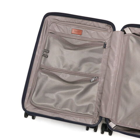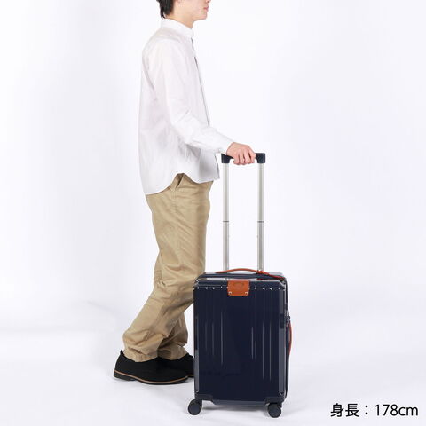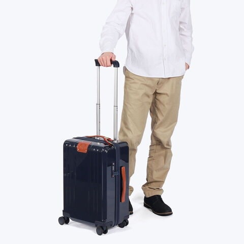 『Orobianco/オロビアンコ』らしい高級感ある本革と鏡面ボディシェルを組み合わせた『シンティラーレ』。こちらは、36L容量のスーツケースです。ボディ素材には、耐衝撃性、耐久性に優れたポリカーボネートを使用。また、キャスターストッパー機能付きで、出張やプライベートで活躍するシンプルで機能的な仕上がりとなっています。